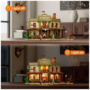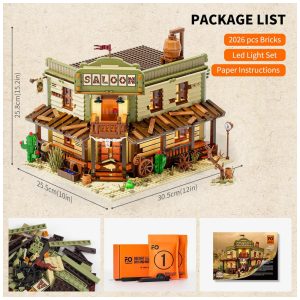 Kit de Construção Bar Western Saloon The Old West Saloon com Luz LED e 2026 Peças FUNWHOLE Verde
