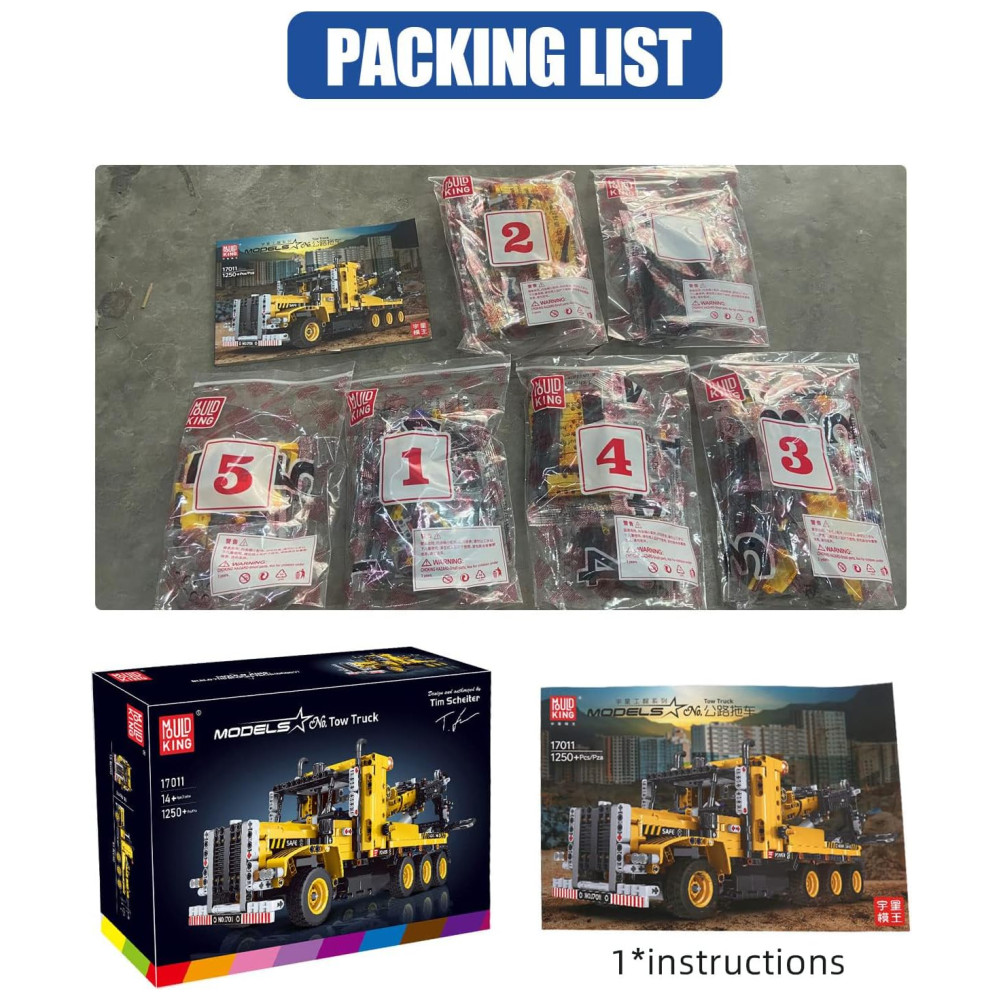 Kit de Construção Caminhão de Reboque com 1250 Peças para Crianças e Adultos Mould King Amarelo