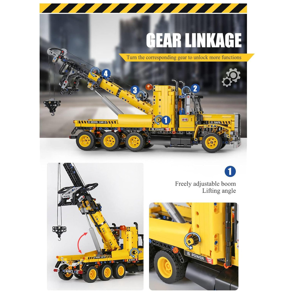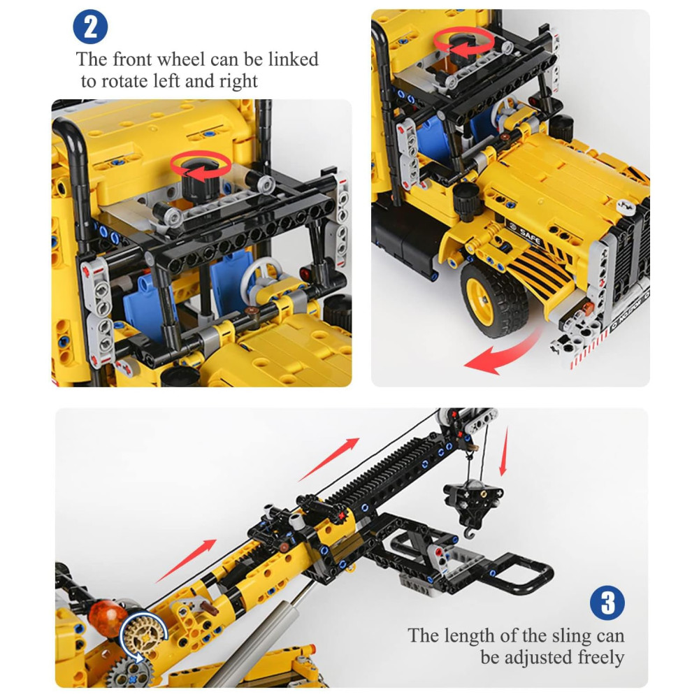 Composto por 1.250 peças com manual de ilustração passo a passo e sacolas numeradas, este kit de guindaste é um brinquedo legal para colecionar com desempenho extremo e visual deslumbrante.