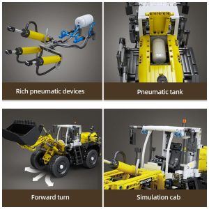Este kit de construção de carregador pneumático é composto por 1803 peças de blocos de construção e inclui instruções coloridas para facilitar a montagem. Com dimensões de 22,4 x 9,17 x 7,16 cm, este brinquedo possui 5 motores, 1 bateria de lítio e 1 controle remoto, que também pode ser controlado através do aplicativo.