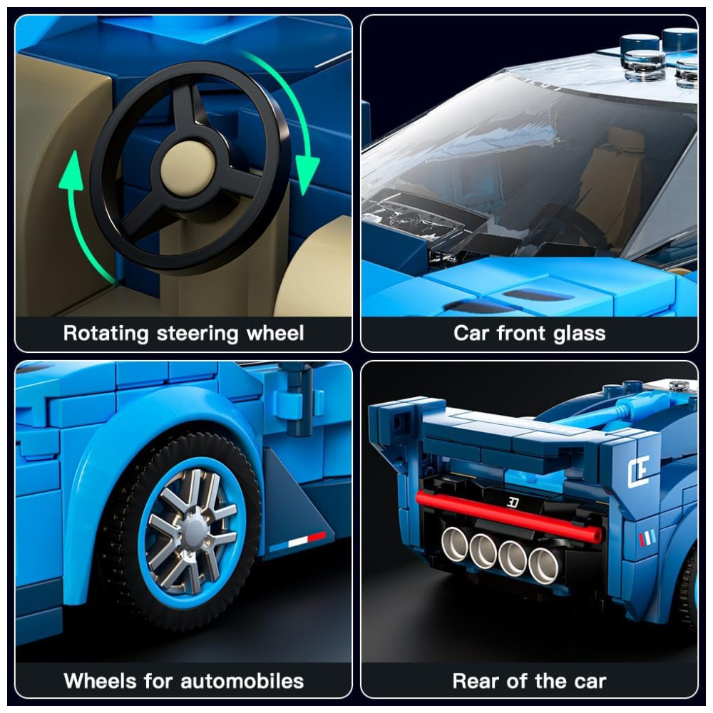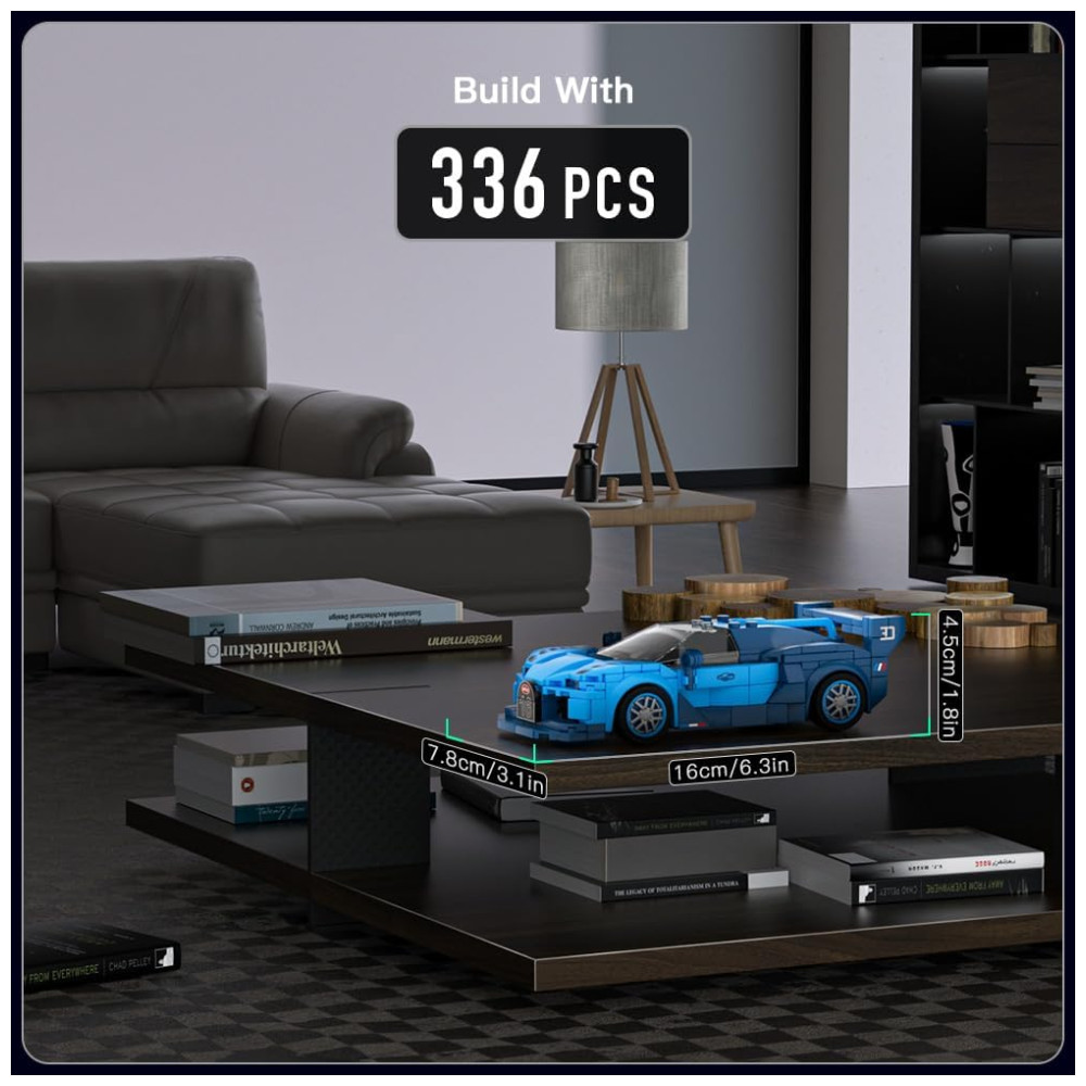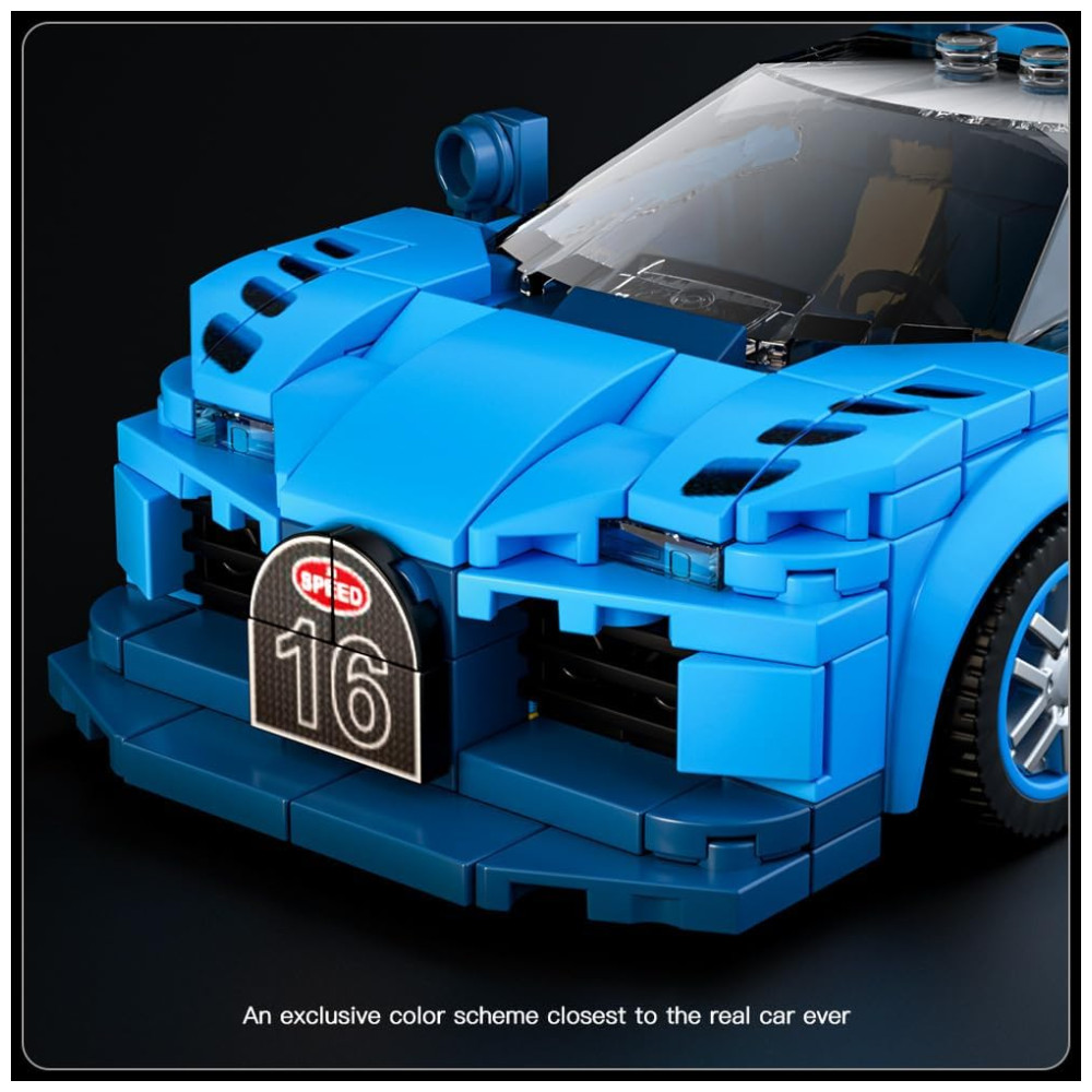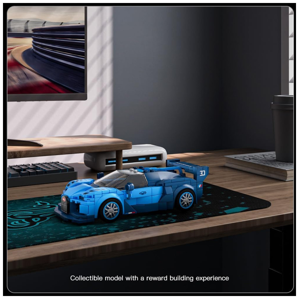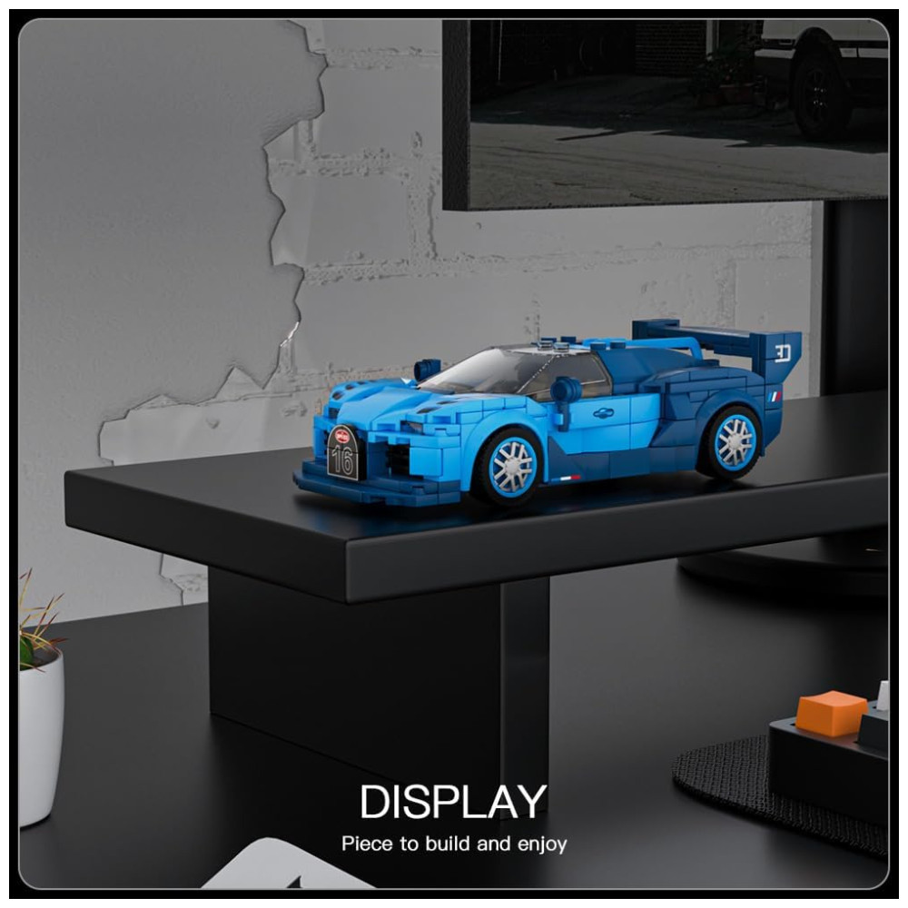 Kit de Construção Carro Bugatti com 336 Peças e Vitrine de Acrílico para Crianças Acima de 8 Anos Mold King Azul