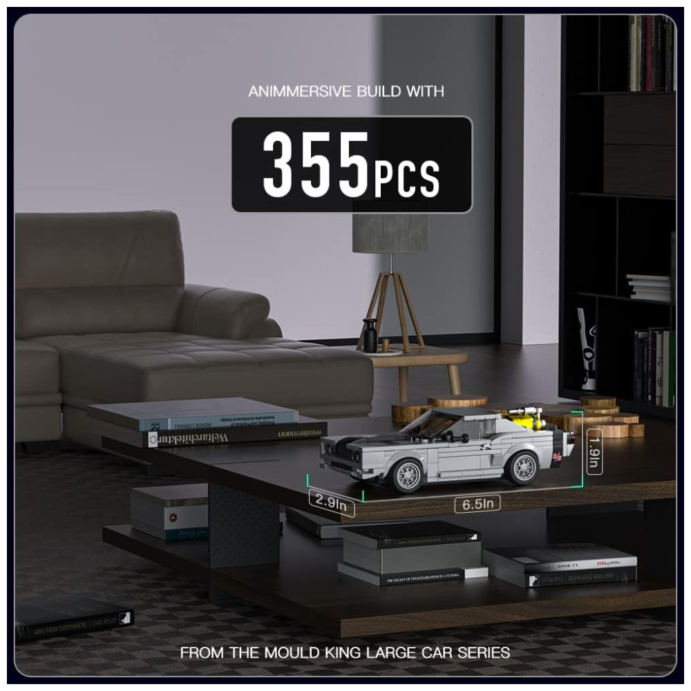 Kit de Construção Carro Dodge Charger com 355 Peças e Vitrine de Acrílico para Crianças Acima de 8 Anos Mold King Cinza