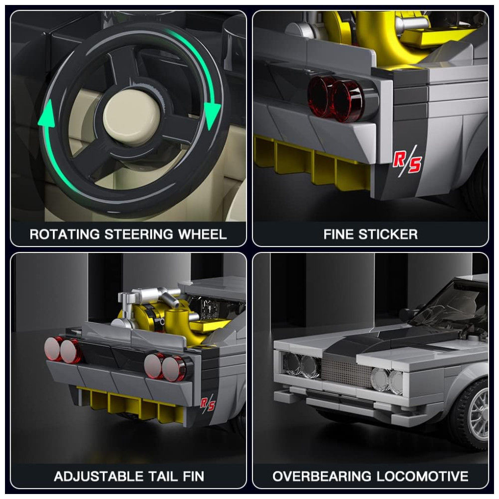 Este kit de blocos de construção é inspirado no Dodge Charger Super Car do Fast Furious, e inclui 355 peças embaladas individualmente, com pneus e adesivos simulados de fibra de carbono. As instruções são detalhadas e fáceis de seguir, ajudando os amantes dos campeões de velocidade a alcançar um progresso de construção rápido e fácil com os carros dos campeões de velocidade.