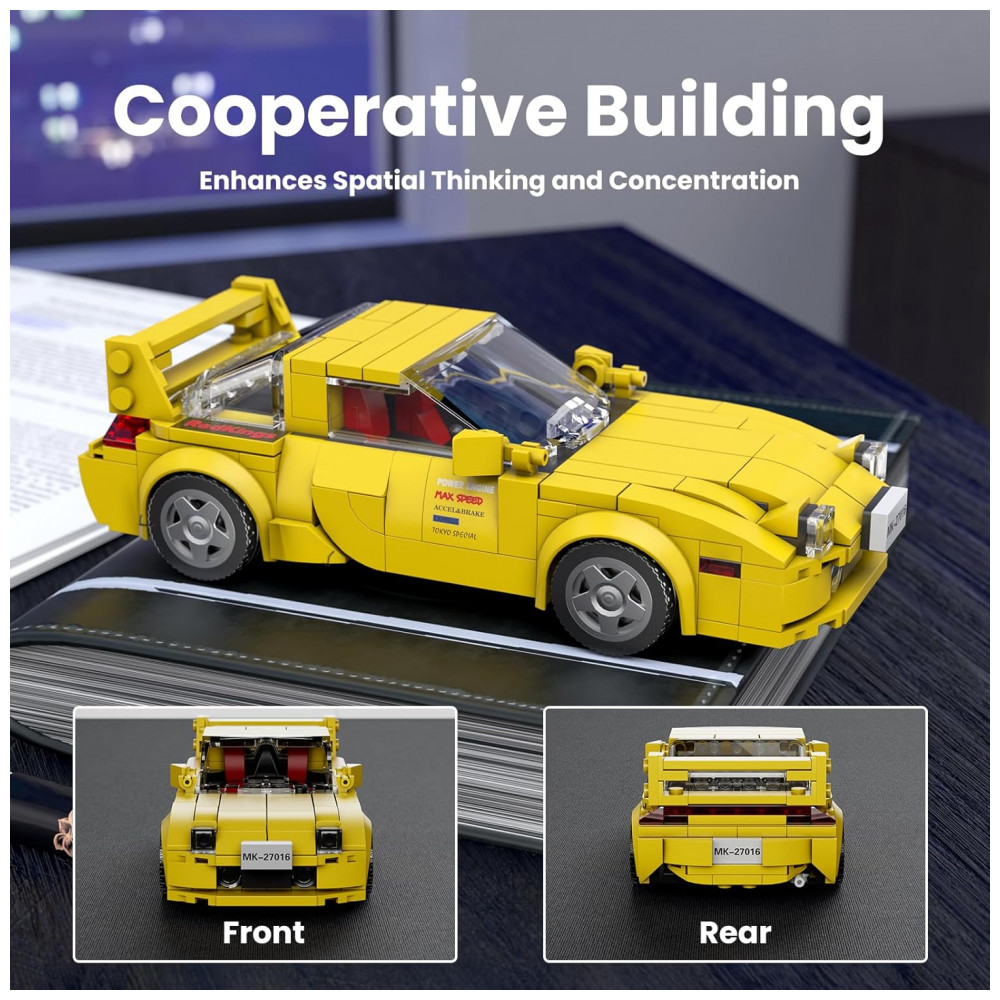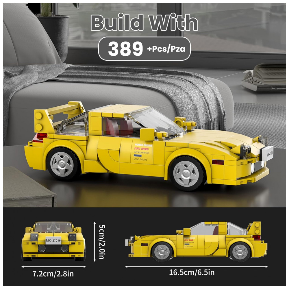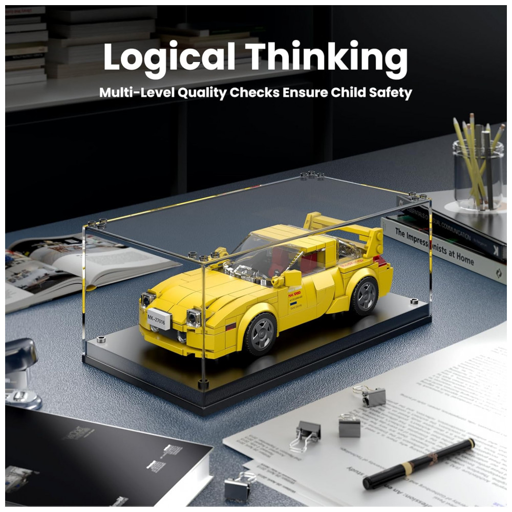 Kit de Construção Carro Initial D RX-7 Mazda com 329 Peças e Vitrine de Acrílico para Crianças Acima de 8 Anos Mold King Amarelo