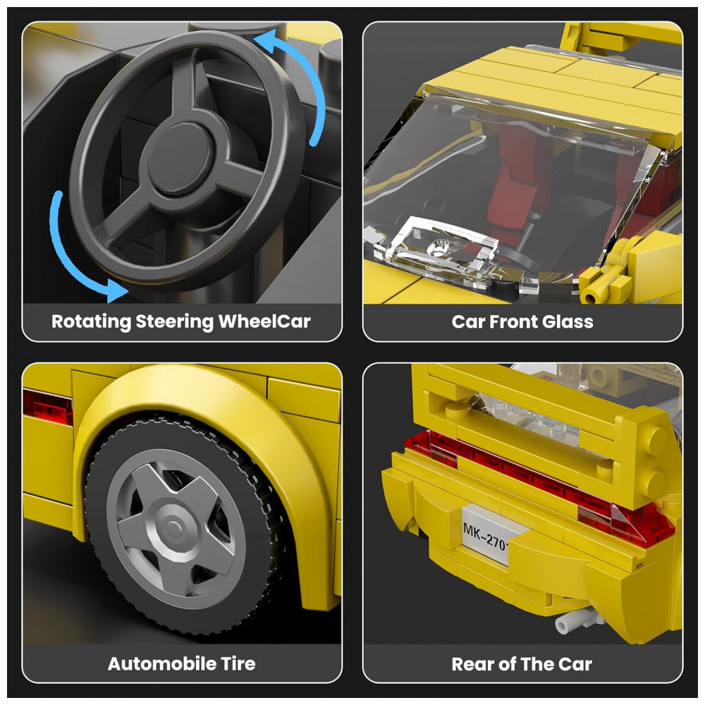Este kit de carro modelo de blocos de construção é baseado no clássico carro de corrida JDM inicial D MAZDA RX7, que apareceu nos filmes Initial D. Composto por 329 peças individuais, este conjunto inclui pneus e adesivos simulados de fibra de carbono.