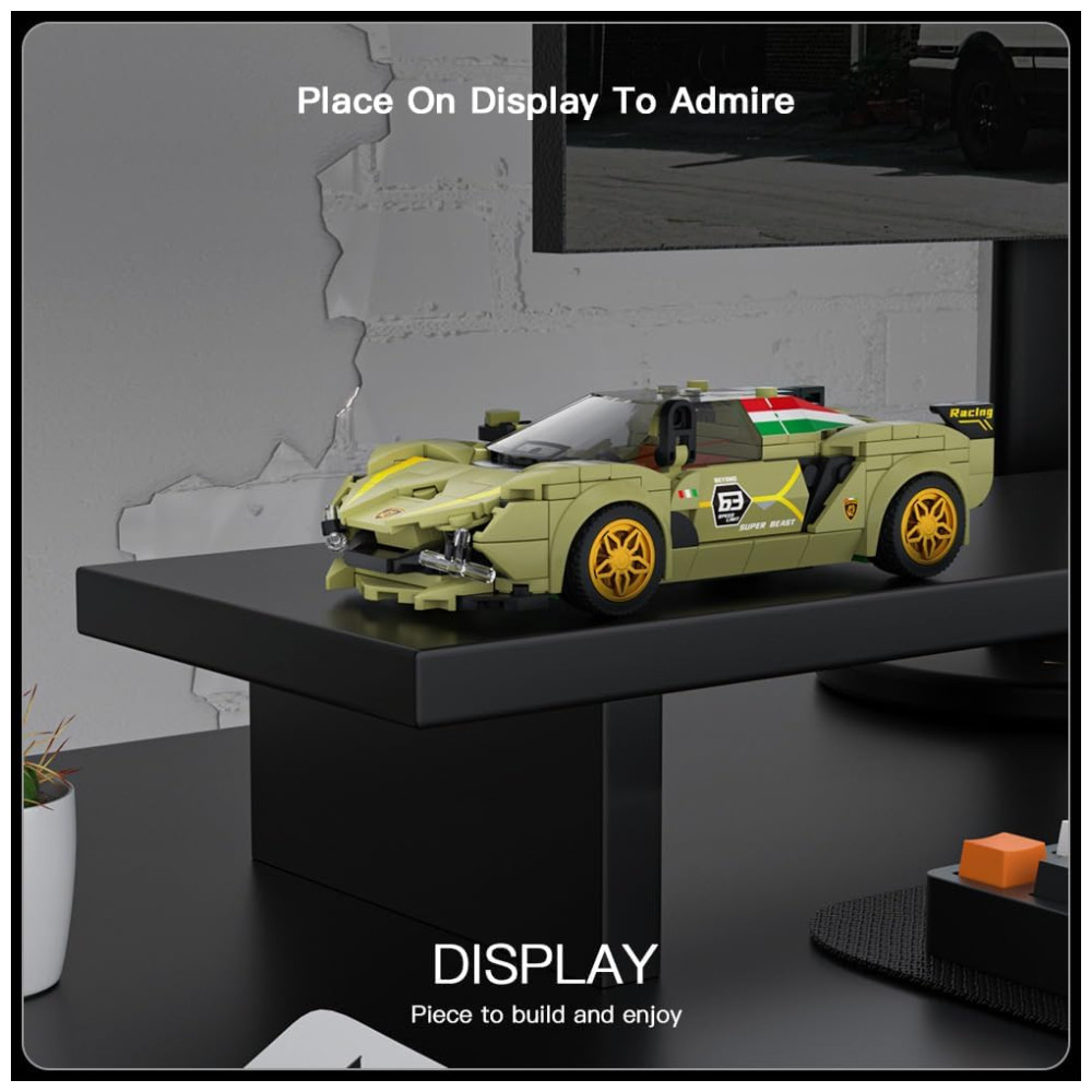 Este modelo de carro de brinquedo de bloco de construção é uma réplica do Lamborghini Sina e inclui 333 acessórios embalados individualmente, com pneus, adesivos simulados de fibra de carbono e vitrine transparente. As instruções detalhadas são fáceis de entender e construir. Feito de materiais ABS ecológicos e seguros, o produto é inofensivo para as crianças e tem uma estrutura sólida, próxima à realidade, o que ajuda a proteger a segurança das crianças enquanto elas se divertem construindo.