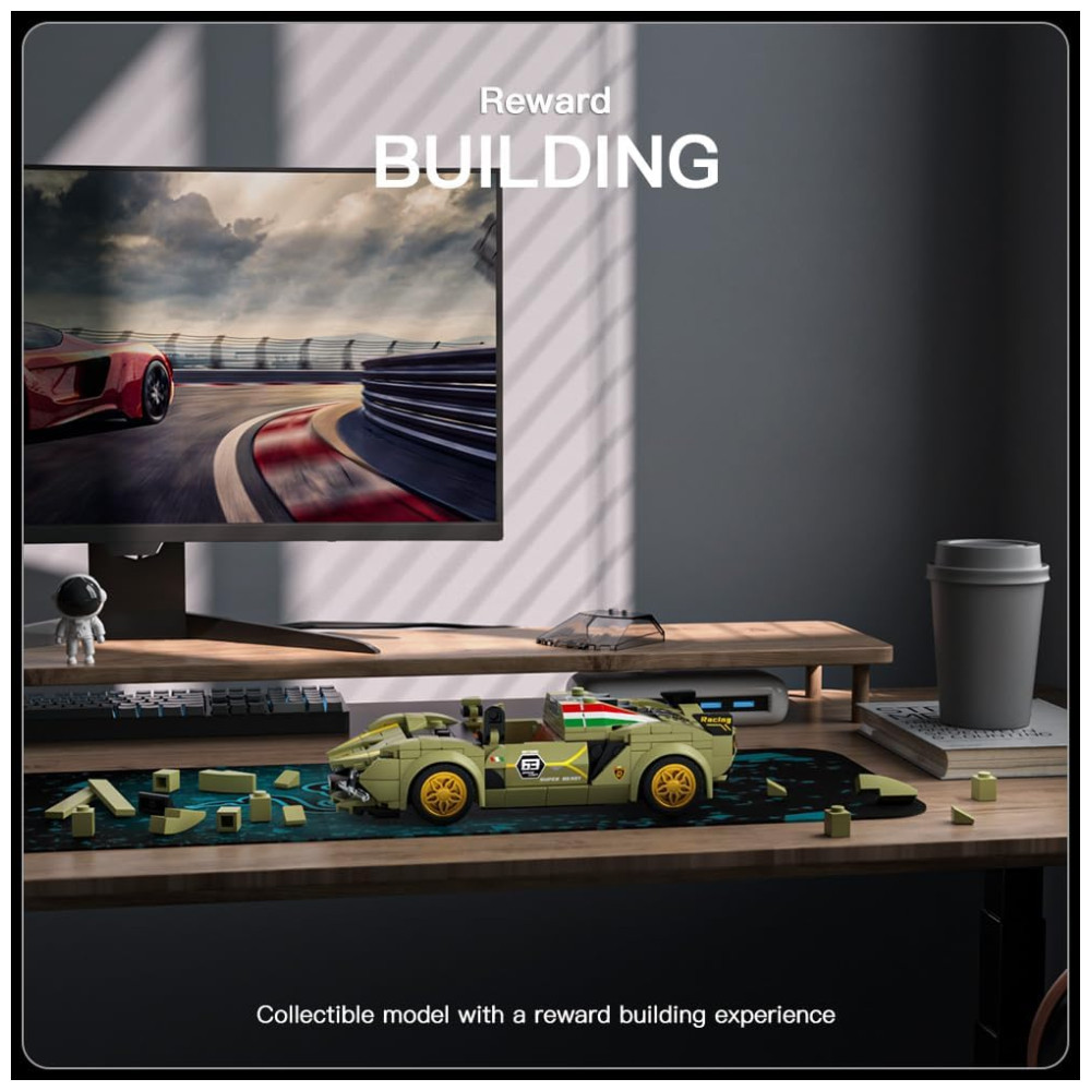 Kit de Construção Carro Lamborghini Sian com 333 Peças e Vitrine de Acrílico para Crianças Acima de 8 Anos Mold King Verde