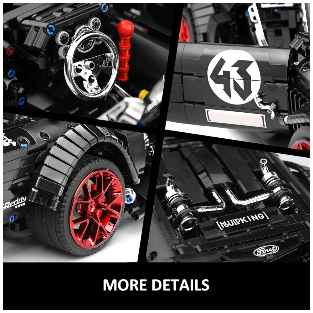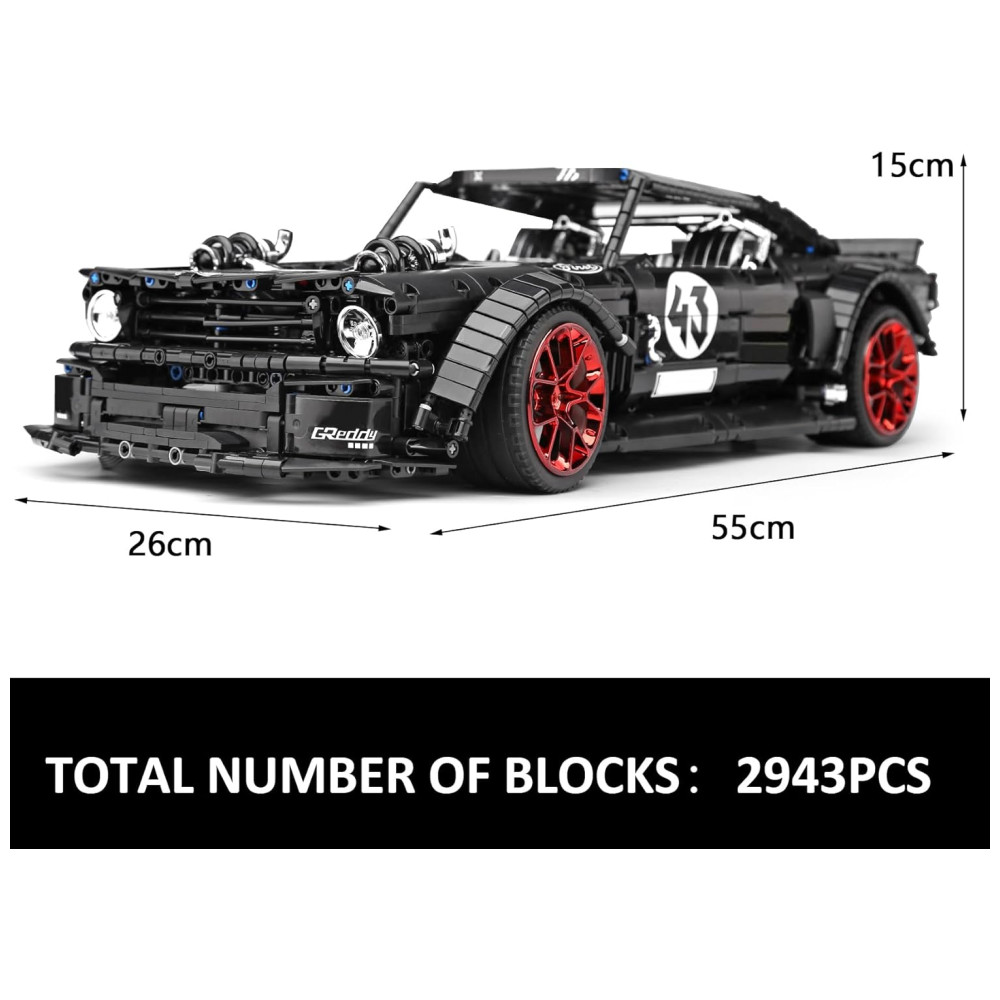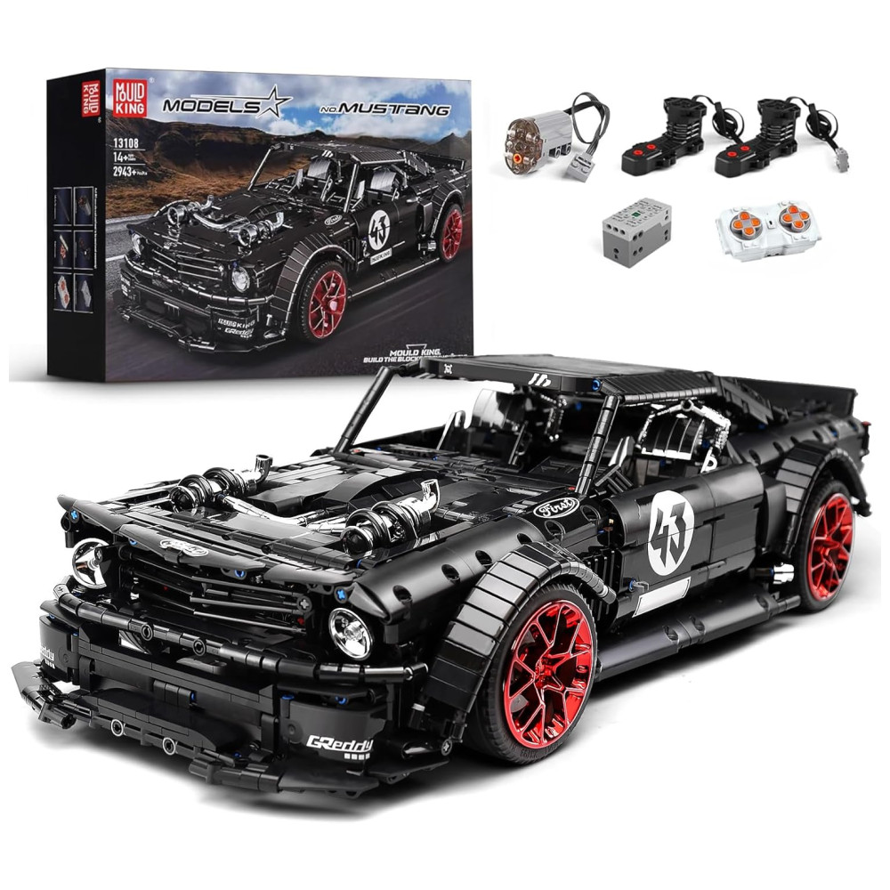 Kit de Construção Carro Mustang com 2943 Peças e Controle Remoto para Crianças e Adultos Mould King Preto