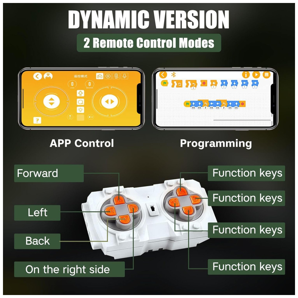 O controle remoto requer 2 pilhas AAA não incluídas. Este kit de blocos de construção é feito de plástico ABS de acrilonitrila butadieno estireno de alta qualidade e fornece um conjunto de brinquedos de blocos de construção seguro para você e seus filhos. Ele vem em uma caixa de presente colorida e é um belo presente para aniversários, Dia das Crianças, Natal, Ano Novo.