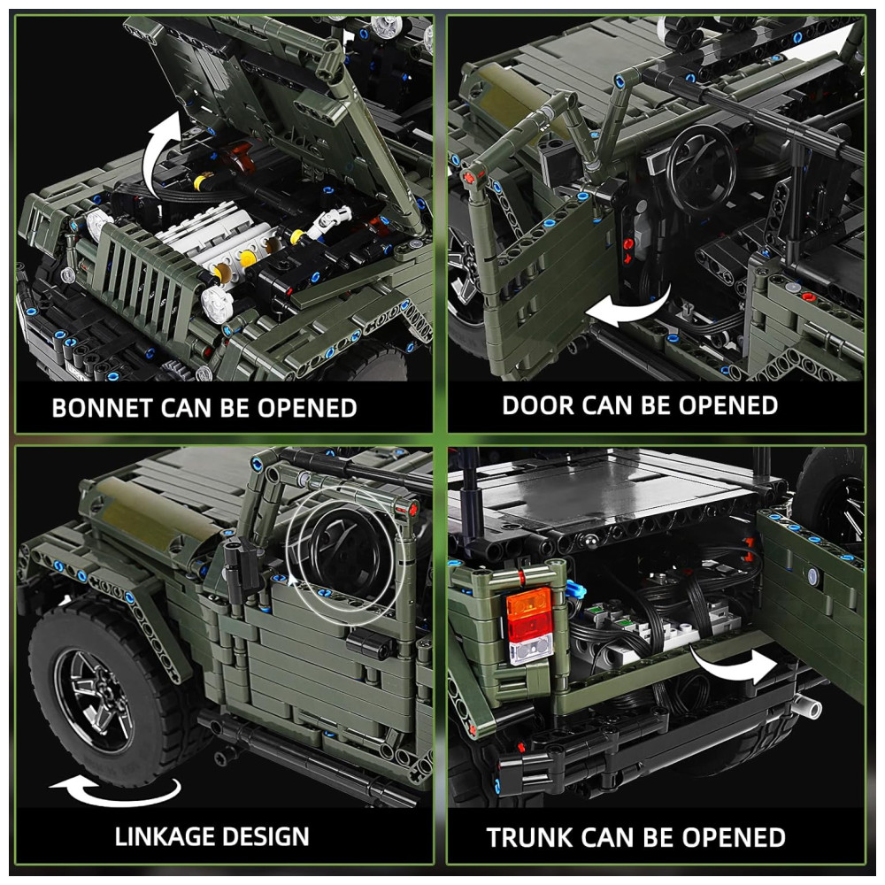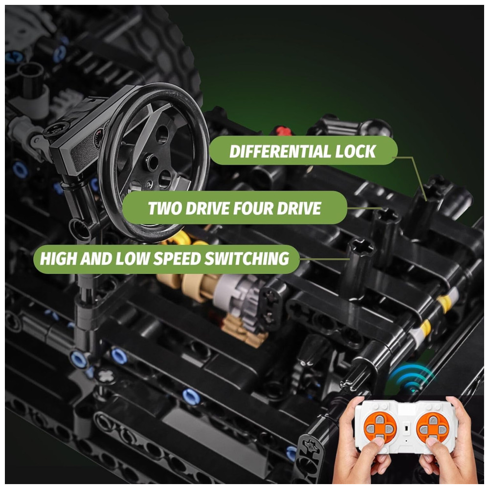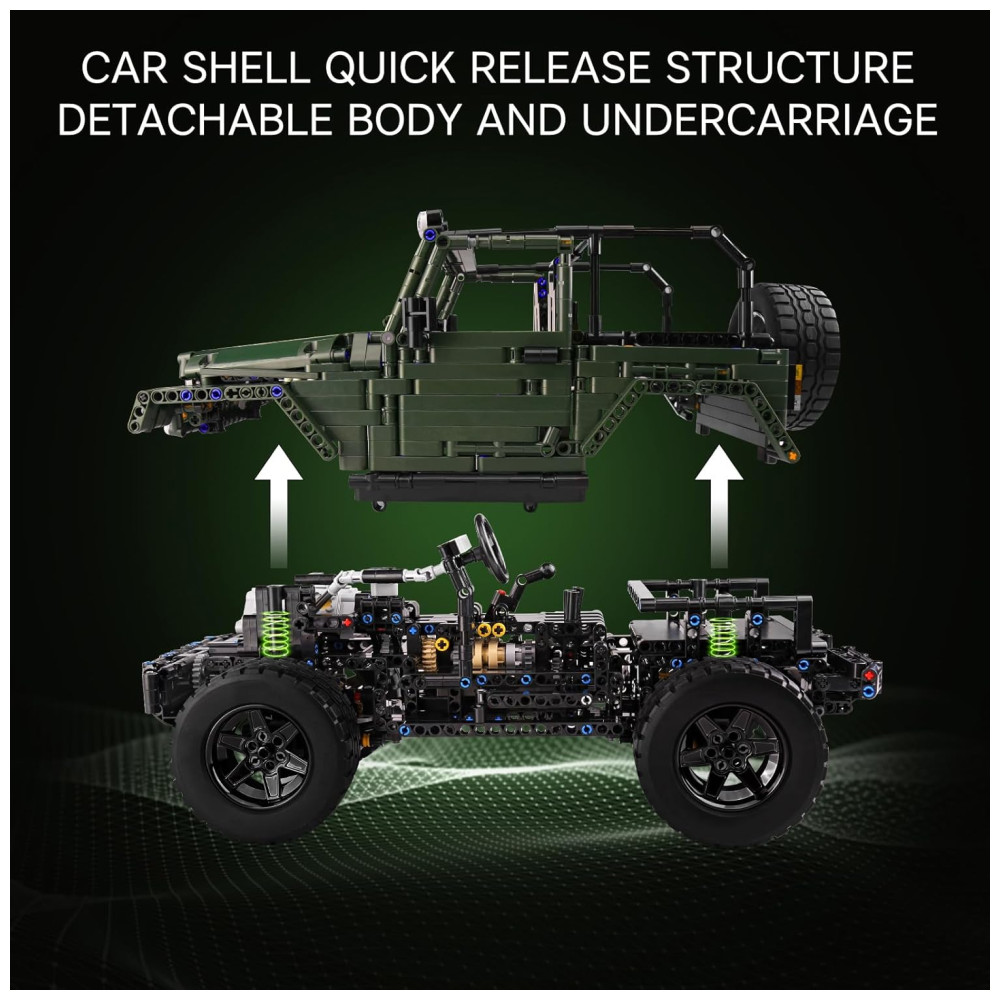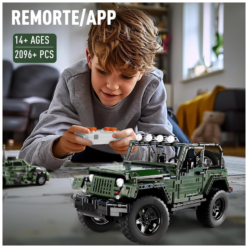Kit de Construção Carro Pickup Wrange Off Road com 2096 Peças e Controle Remoto para Adultos Mould King Verde