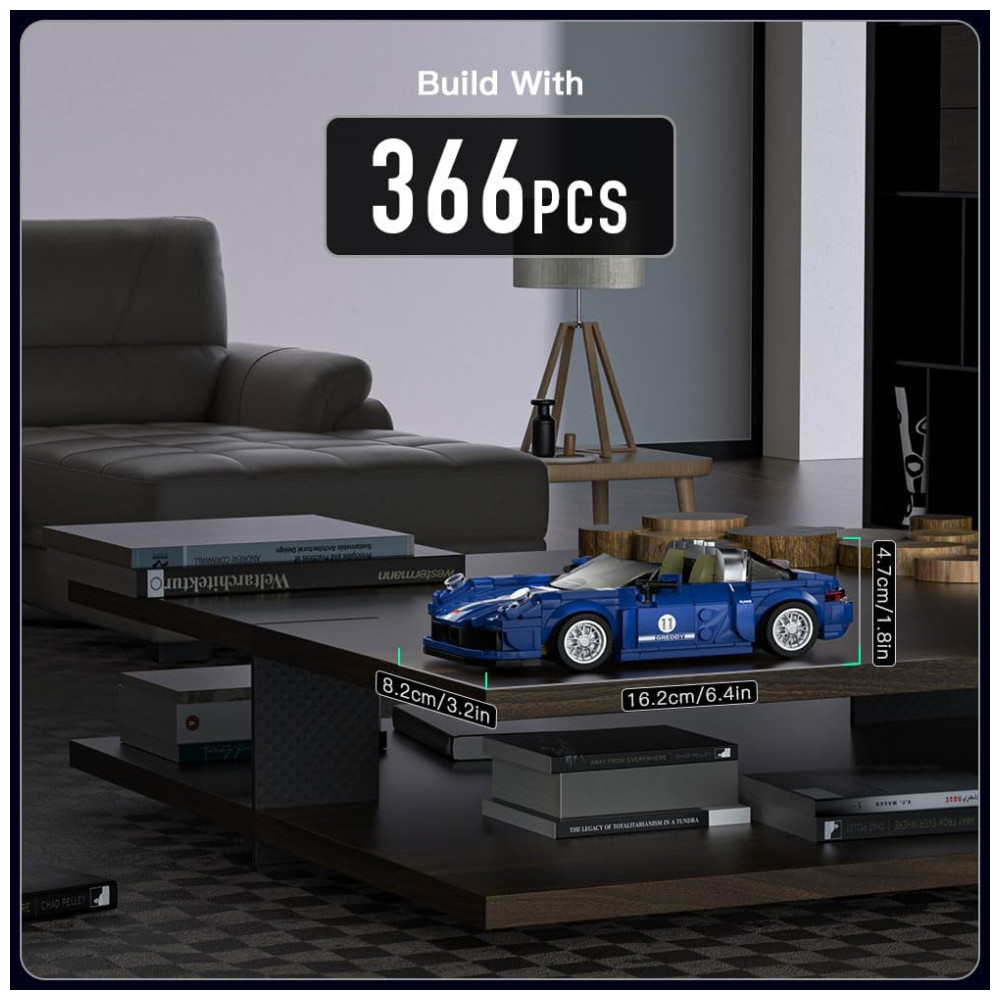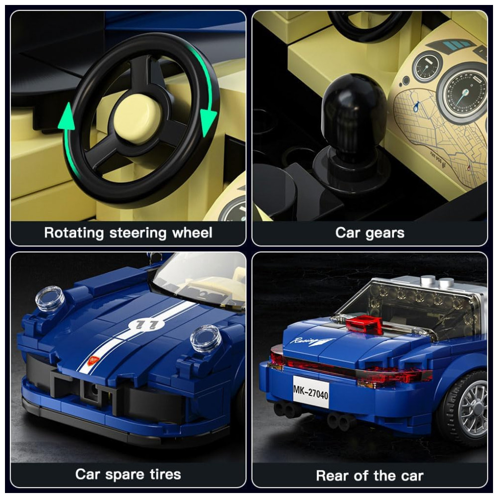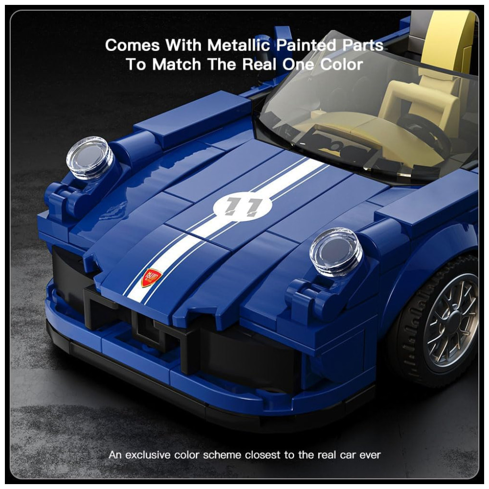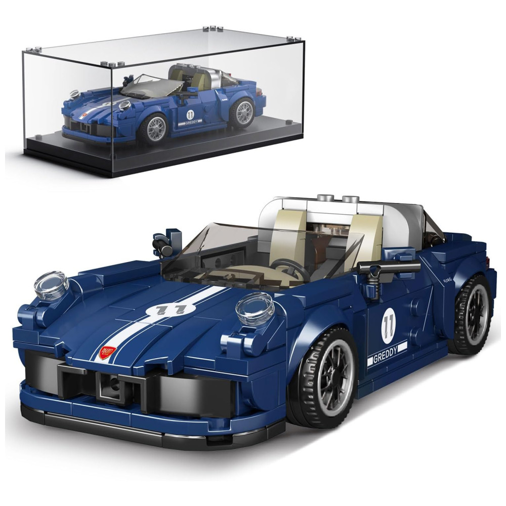 Kit de Construção Carro Porsche 911 Targa com 366 Peças e Vitrine de Acrílico para Crianças Acima de 8 Anos Mold King Azul