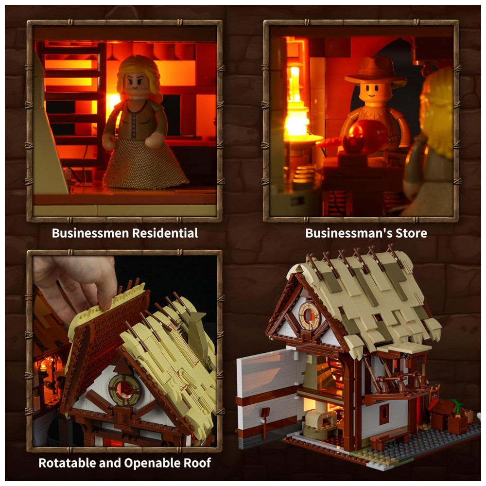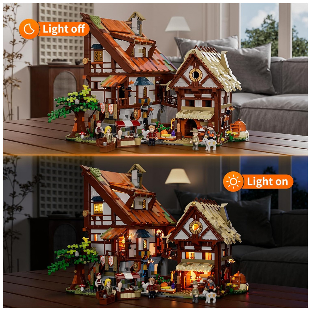 Kit de Construção Cidade Medieval com Luz LED e 2614 Peças FUNWHOLE
