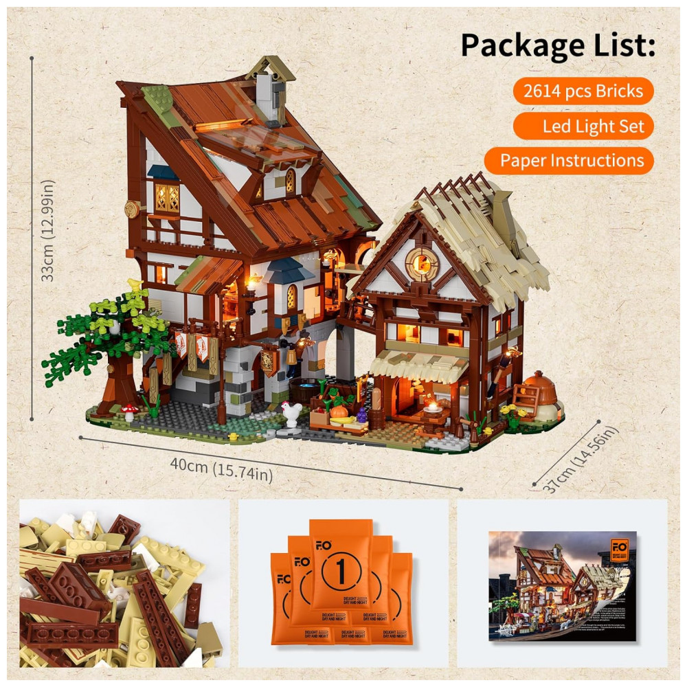 Uma ótima coleção para fãs do estilo medieval: Este modelo de medieval de 2.614 peças vem com dois livros de instruções, incluindo instruções claras para instalação e montagem de iluminação, facilitando aos iniciantes a construção de sua própria cena medieval em etapas passo a passo. É adequado para entusiastas de blocos apaixonados por criar cenários com temática medieval
