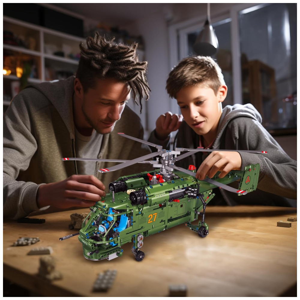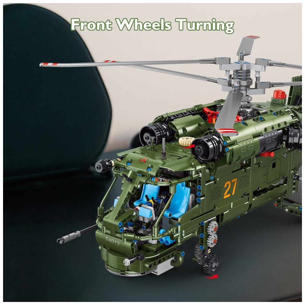Kit de Construção Helicóptero Militar Ka27 com 1800 Peças JMBricklayer Verde