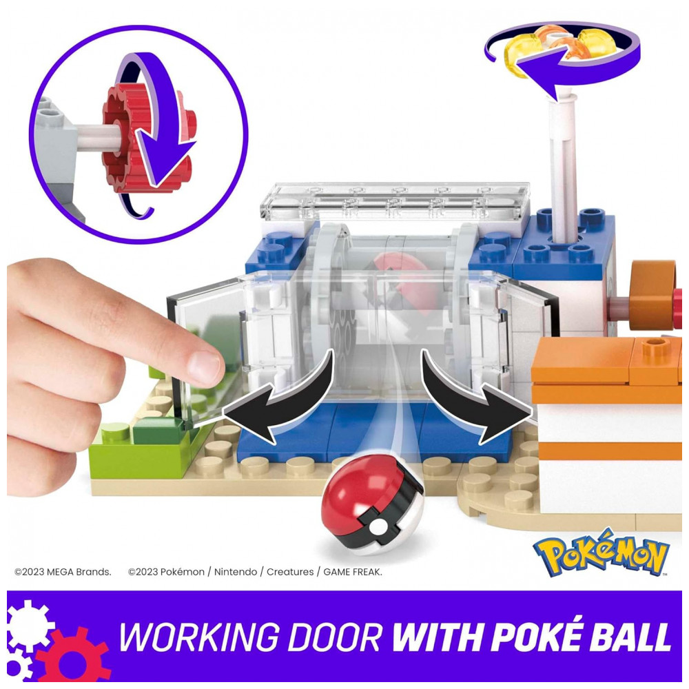 As peças são compatíveis com outros conjuntos da linha Adventure Builder MEGA Pokémon, permitindo conectar módulos adicionais para criar um mundo maior com movimento integrado. O kit é indicado para crianças a partir de 7 anos, favorecendo habilidades de montagem, coordenação motora fina, raciocínio espacial e resolução de problemas durante o processo de construção.