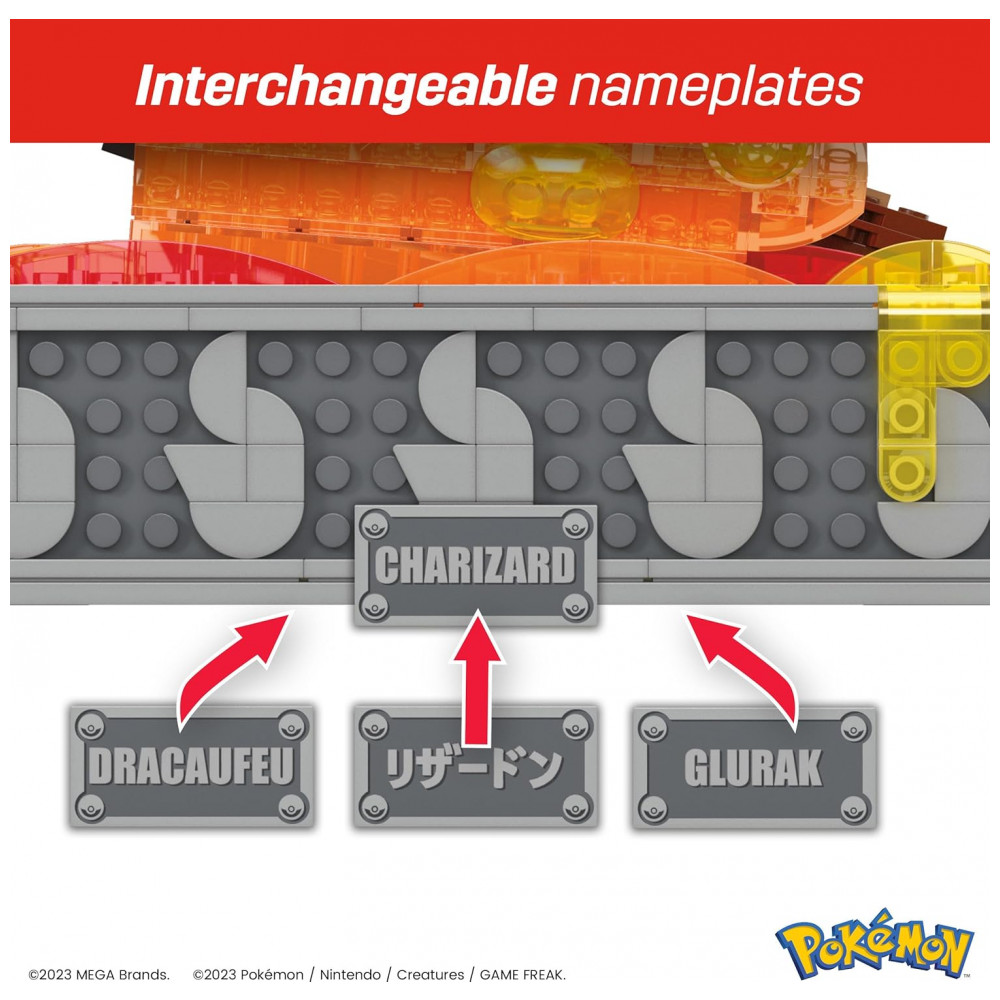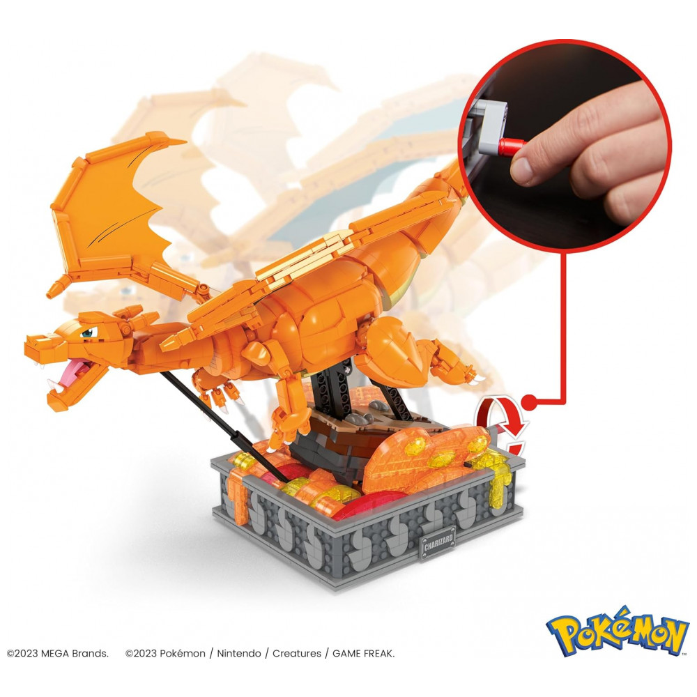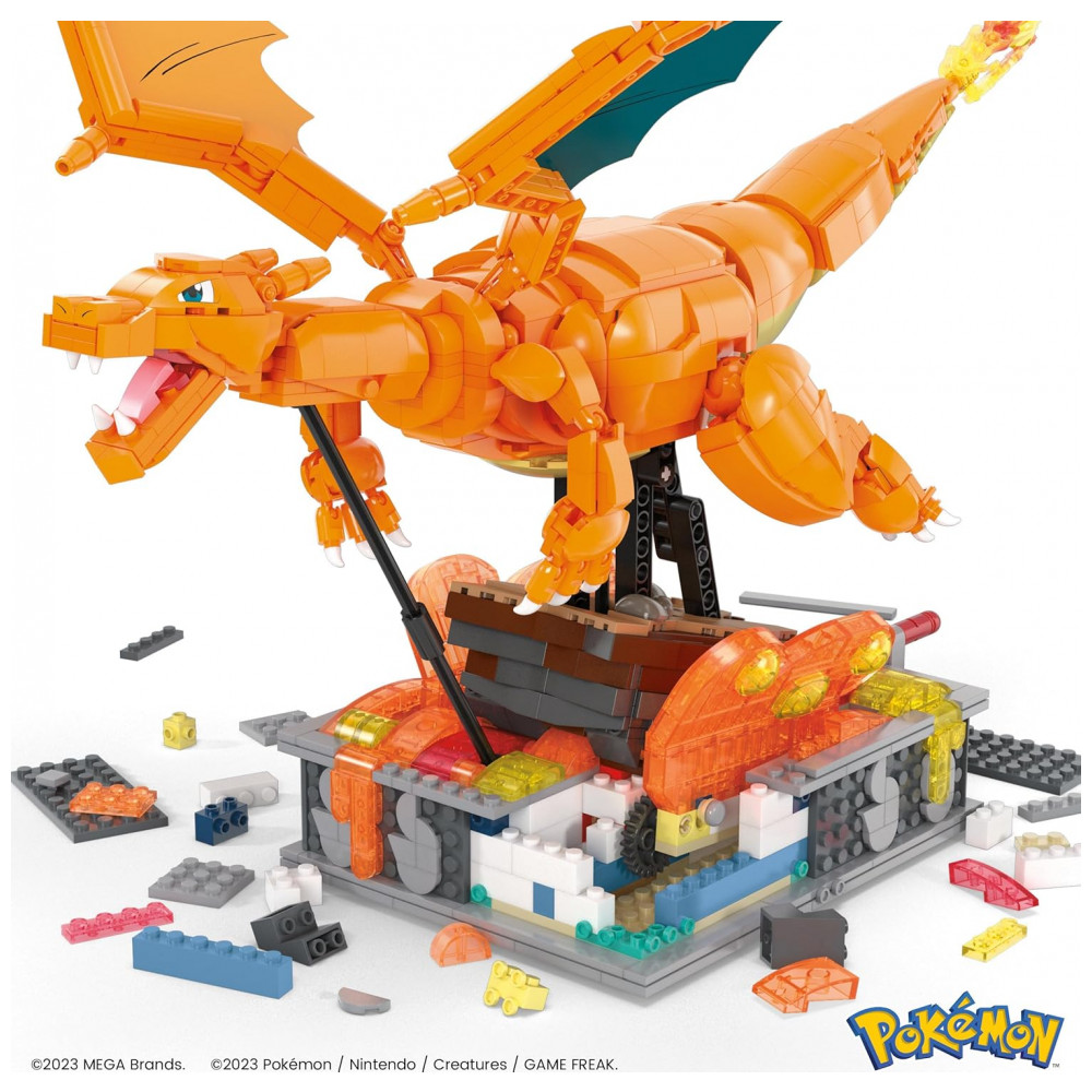 Kit de construção MEGA Pokémon Motion Charizard 1664 peças com movimento de asas para exposição