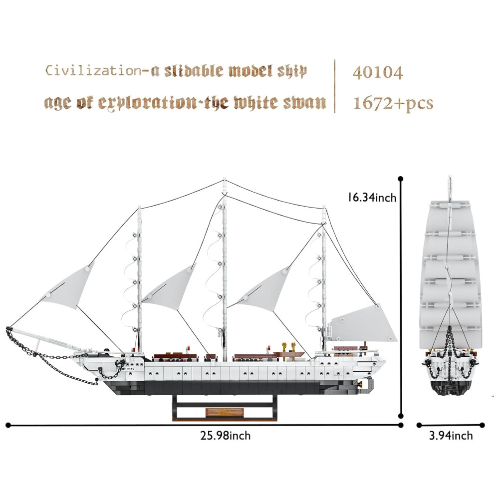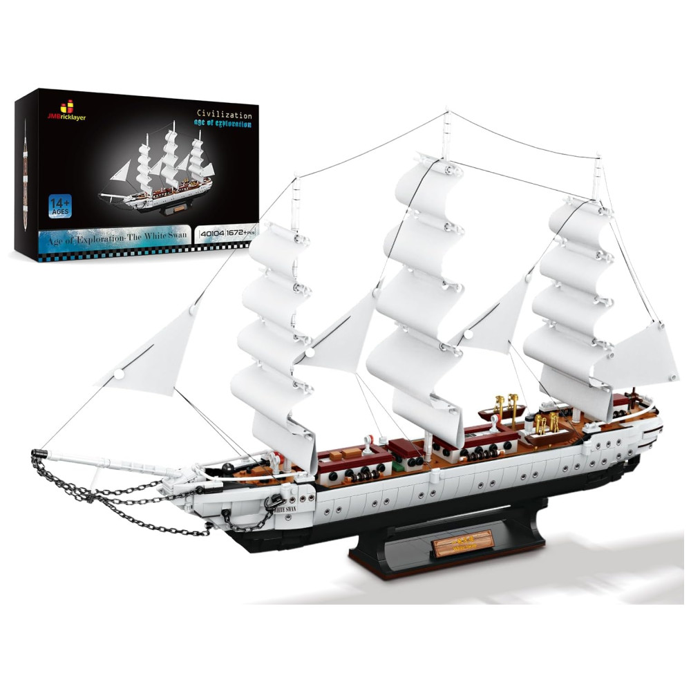 Kit de Construção Navio Cisne Branco com 1672 Peças JMBricklayer Branco