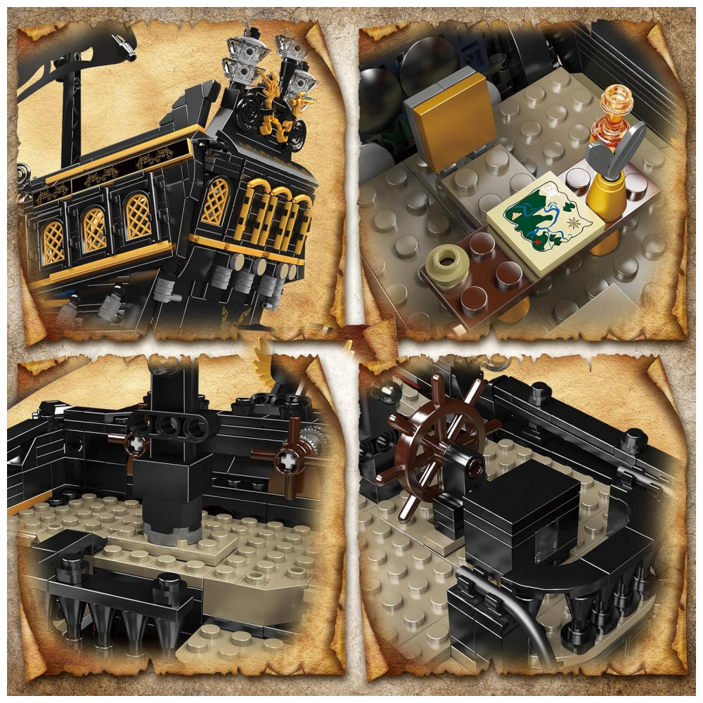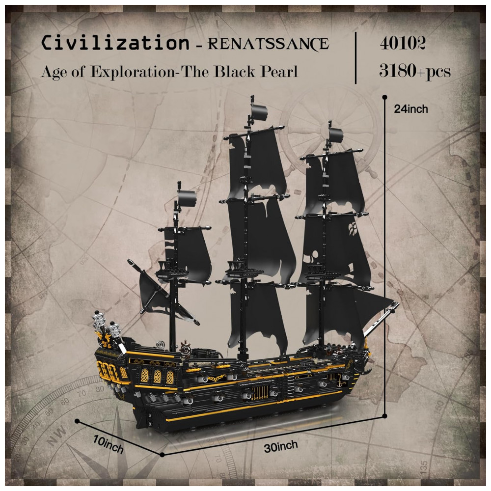 1O navio JMBricklayer 40102 contendo 2.868 tijolos. Este conjunto de navio traz a imagem espetacular do navio do filme para a vida real. Nosso navio é rico em estrutura e cada detalhe da proa, popa, velas e decoração interior é realista.