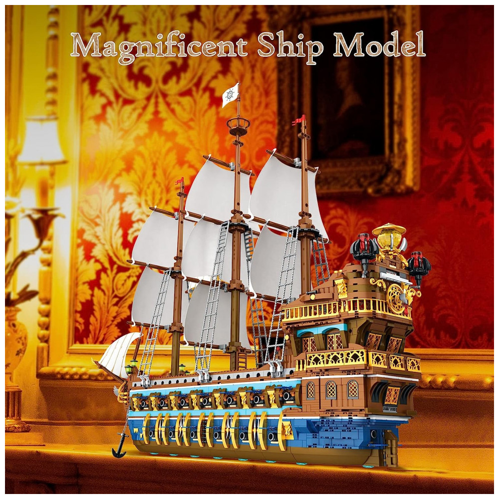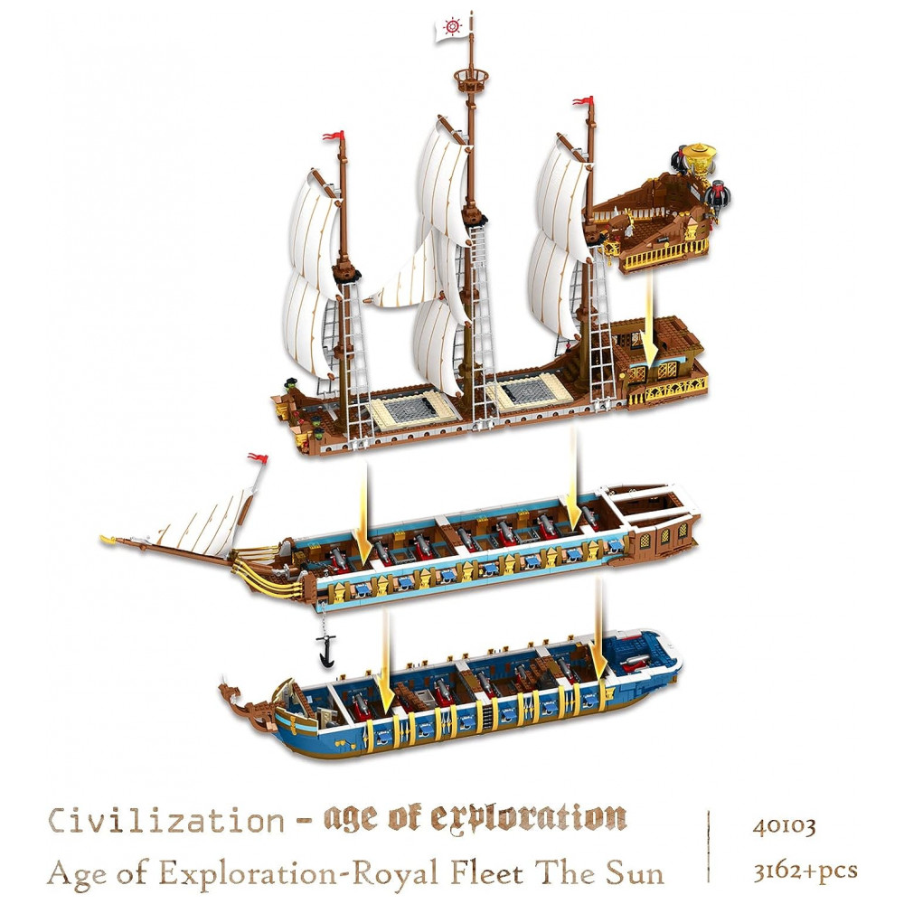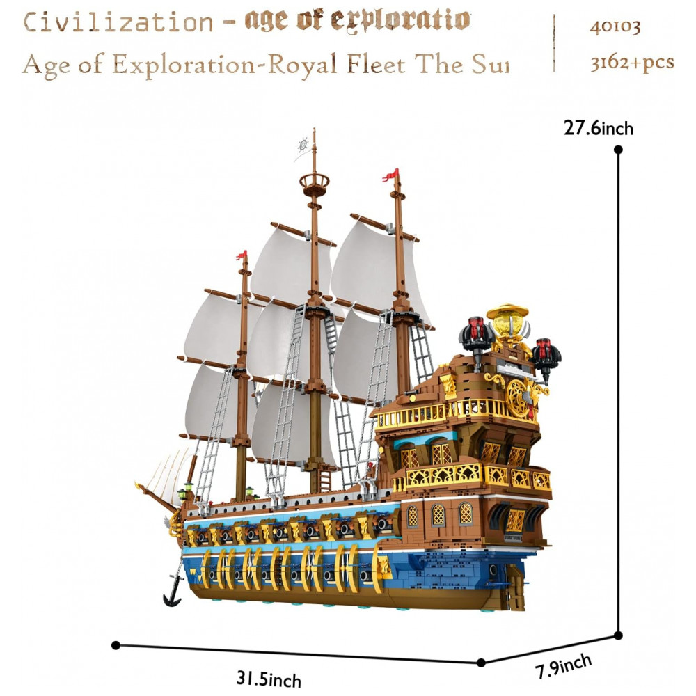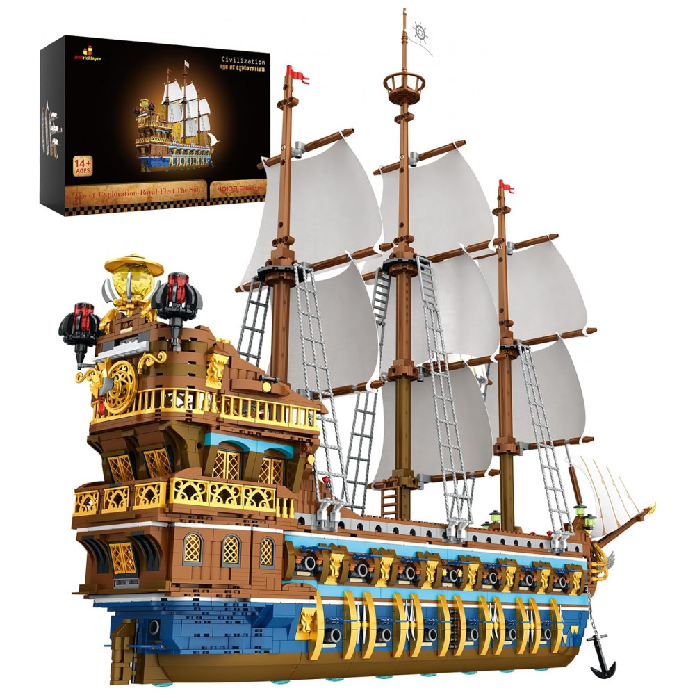 Kit de Construção Navio da Frota Real com Design em Camadas e 3162 Peças JMBricklayer Marrom
