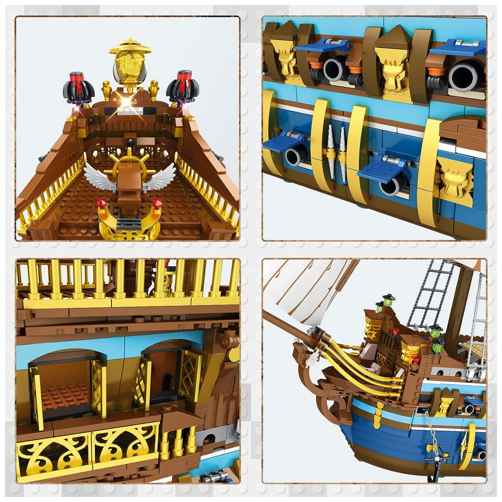 Estrutura hierárquicaEste brinquedo de navio adota um design de estrutura em camadas, e a cabine, o convés, etc. podem ser rapidamente desmontados e separados, tornando este edifício estrutural mais jogável. O design simulado em forma de vela quadrada de três mastros é combinado com velas premium, e a impressão requintada na bandeira também é muito única. A estrutura do casco é estável e, quando o vento sopra, as velas balançam com o vento, restaurando o cenário do navio à vela.