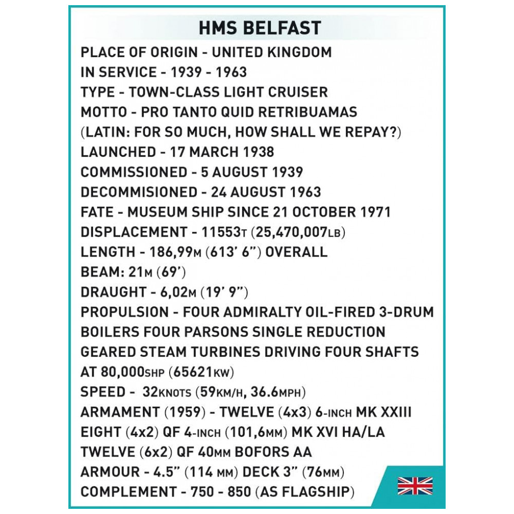 Kit de Construção Navio HMS Belfast da Segunda Guerra Mundial com 1517 Peças COBI Preto