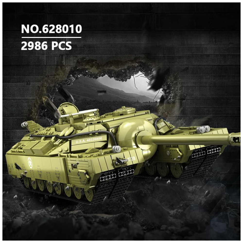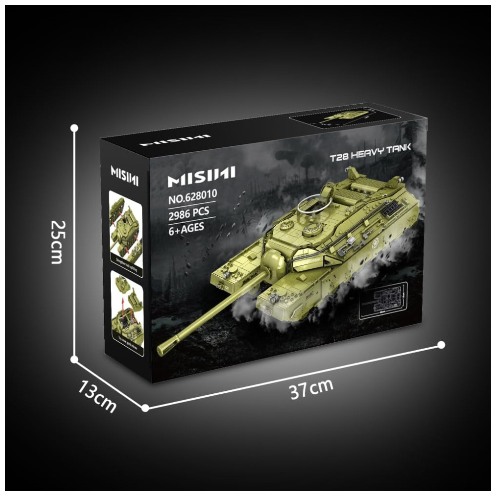 Este é o Conjunto de Construção de Tanque MISINI, um novo tanque MOC para 2022, que é um conjunto de blocos de construção de um tanque pesado militar americano T28 da Segunda Guerra Mundial. As duas esteiras laterais reforçadas podem ser divididas, a cabine pode ser aberta e a parte superior tem um design de liberação rápida.