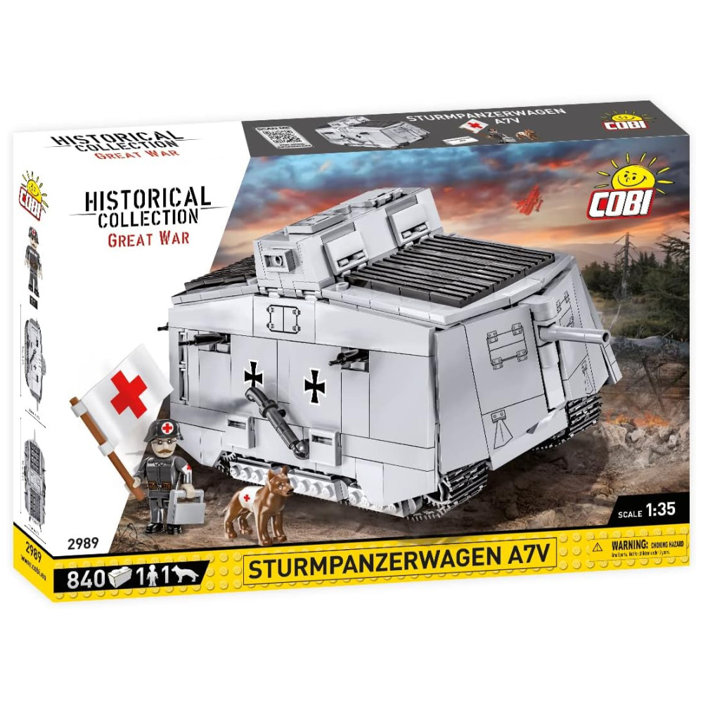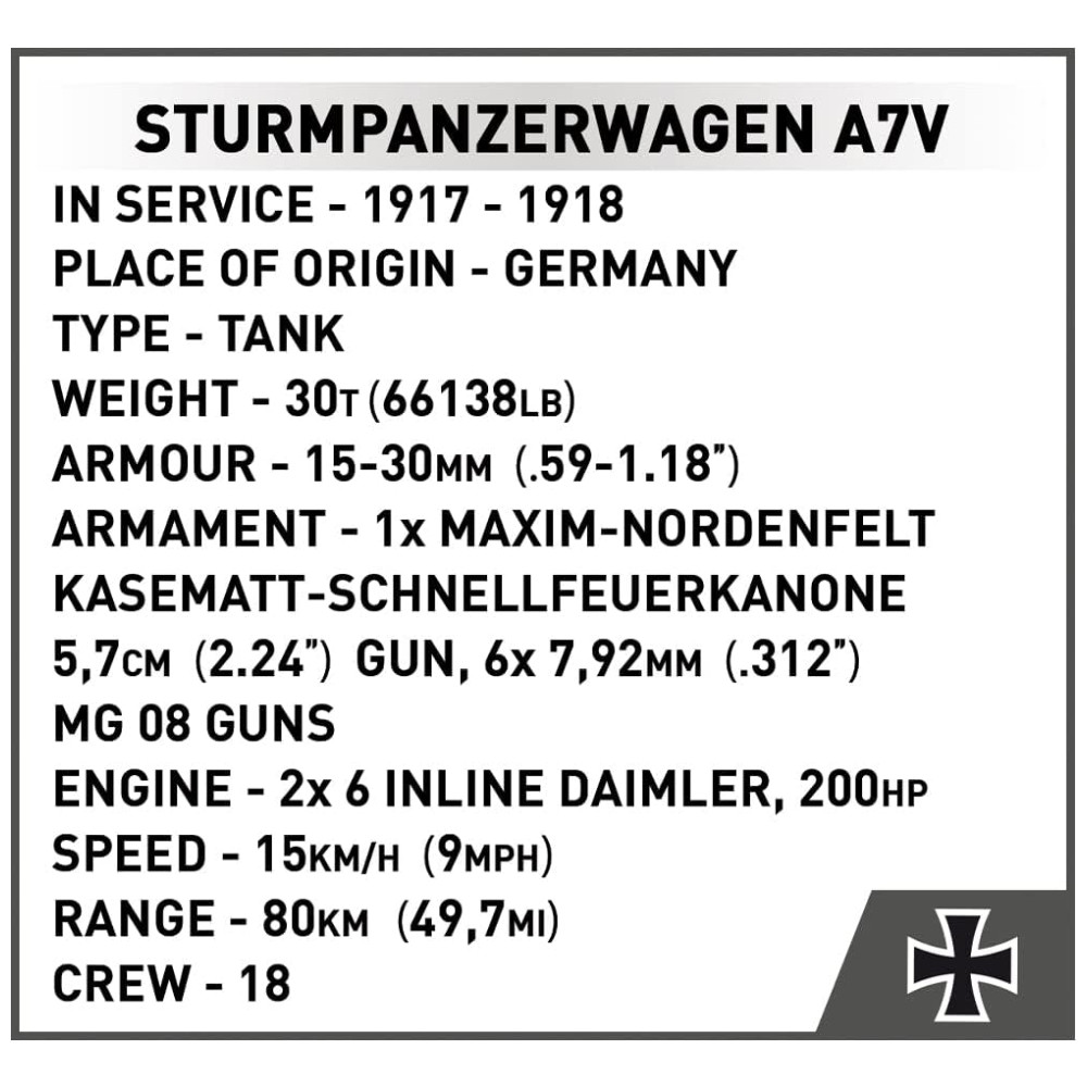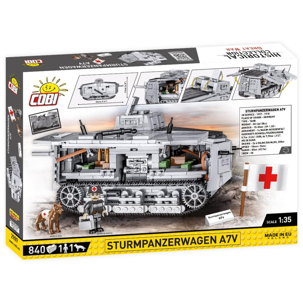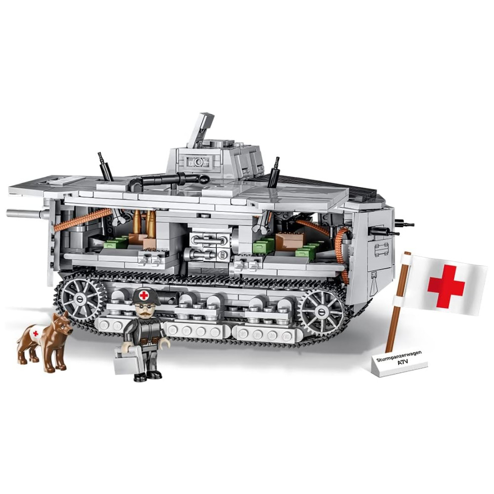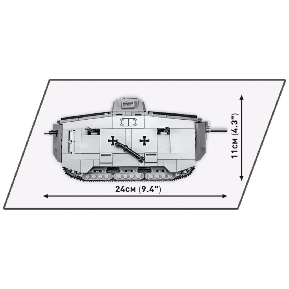 Kit de Construção Tanque Sturmpanzerwagen A7V da Grande Guerra com 842 Peças COBI Cinza