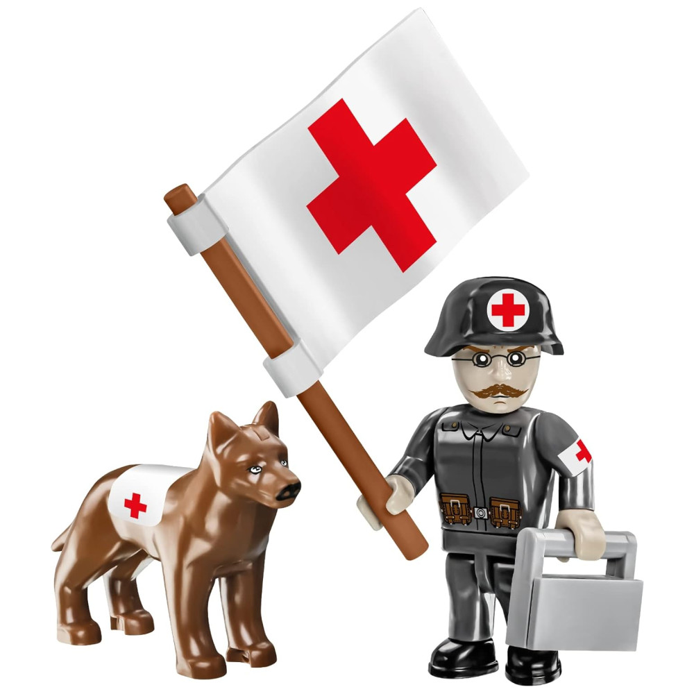 Uma estatueta especial de um paramédico alemão com um cão misericordioso