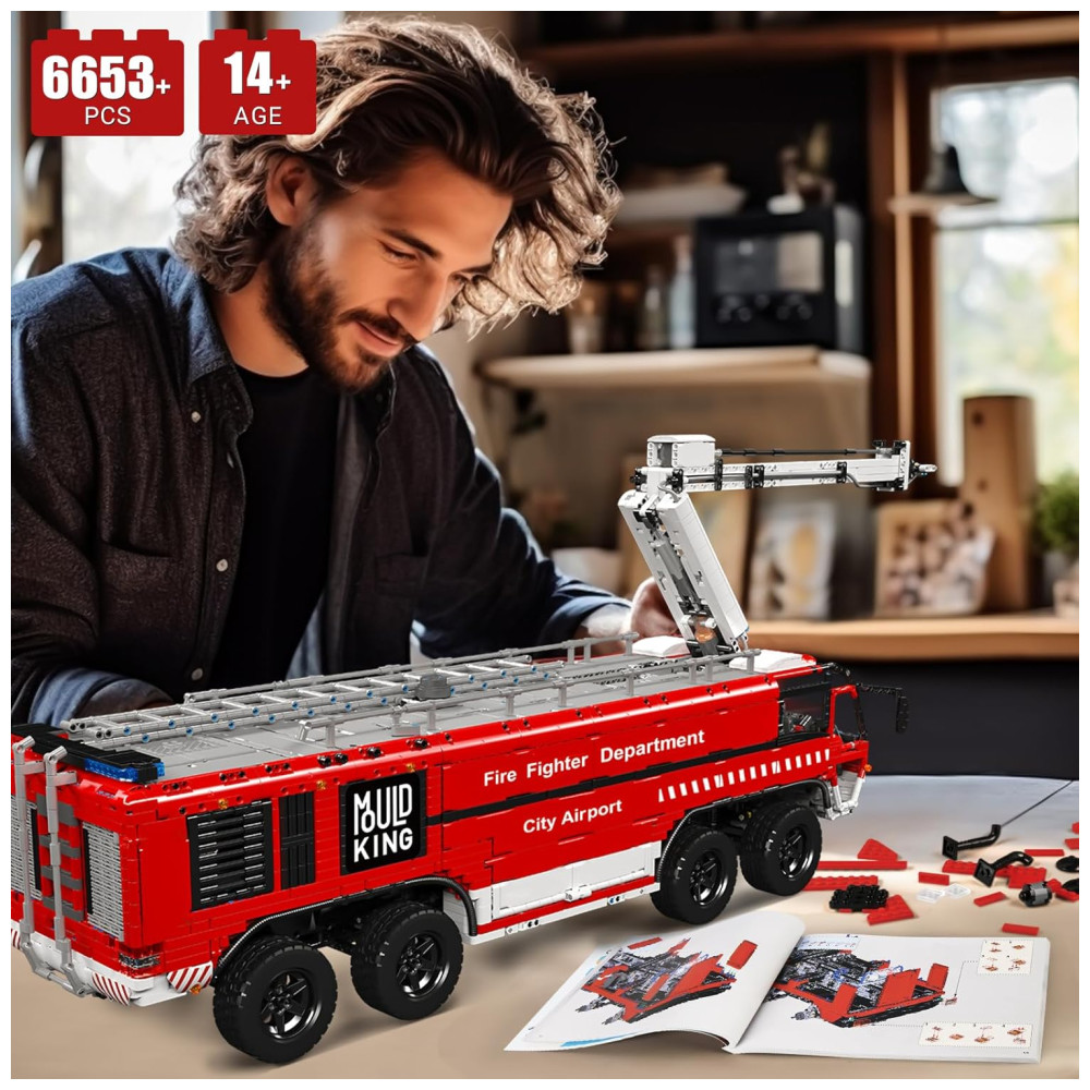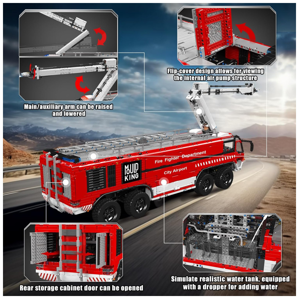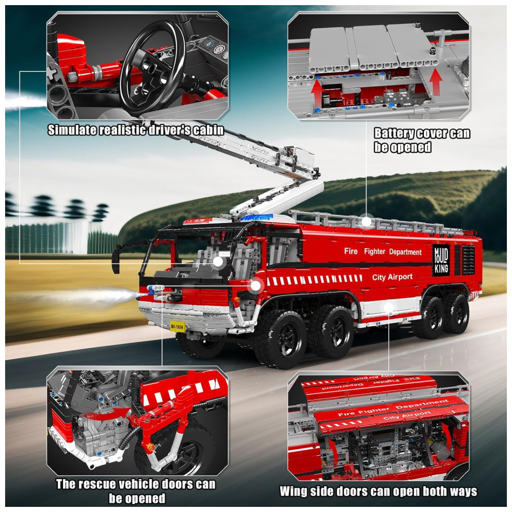 Kit de Construção Veículo Resgate de Aeroporto com 6653 Peças e Controle Remoto para Crianças e Adultos Mould King Vermelho