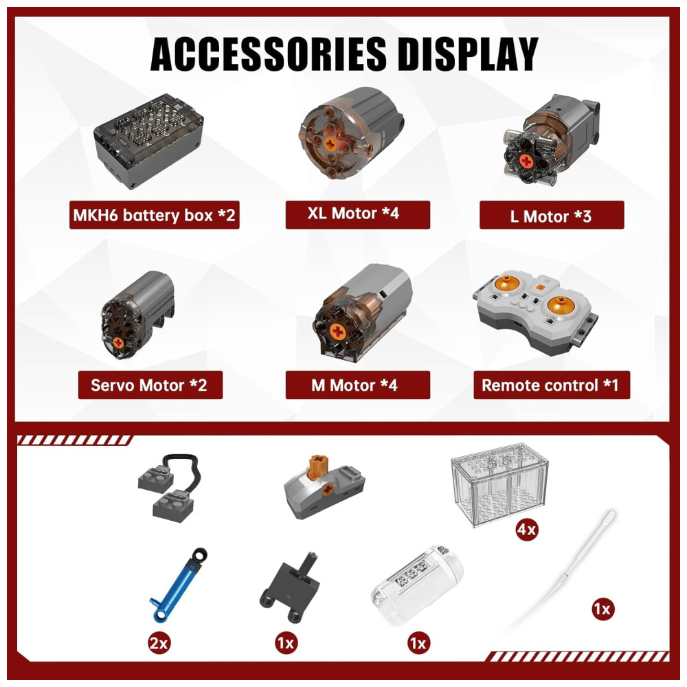 Este é um kit de blocos de construção de veículo de resgate de engenharia mecânica, composto por 6653 peças de blocos de construção e instruções em papel colorido para facilitar a montagem. É uma atividade divertida para ser feita com seu parceiro ou filhos. O Mold King 19004 é uma versão dinâmica do carro de concurso para acidentes de aeroporto, equipado com um motor e bateria de lítio.