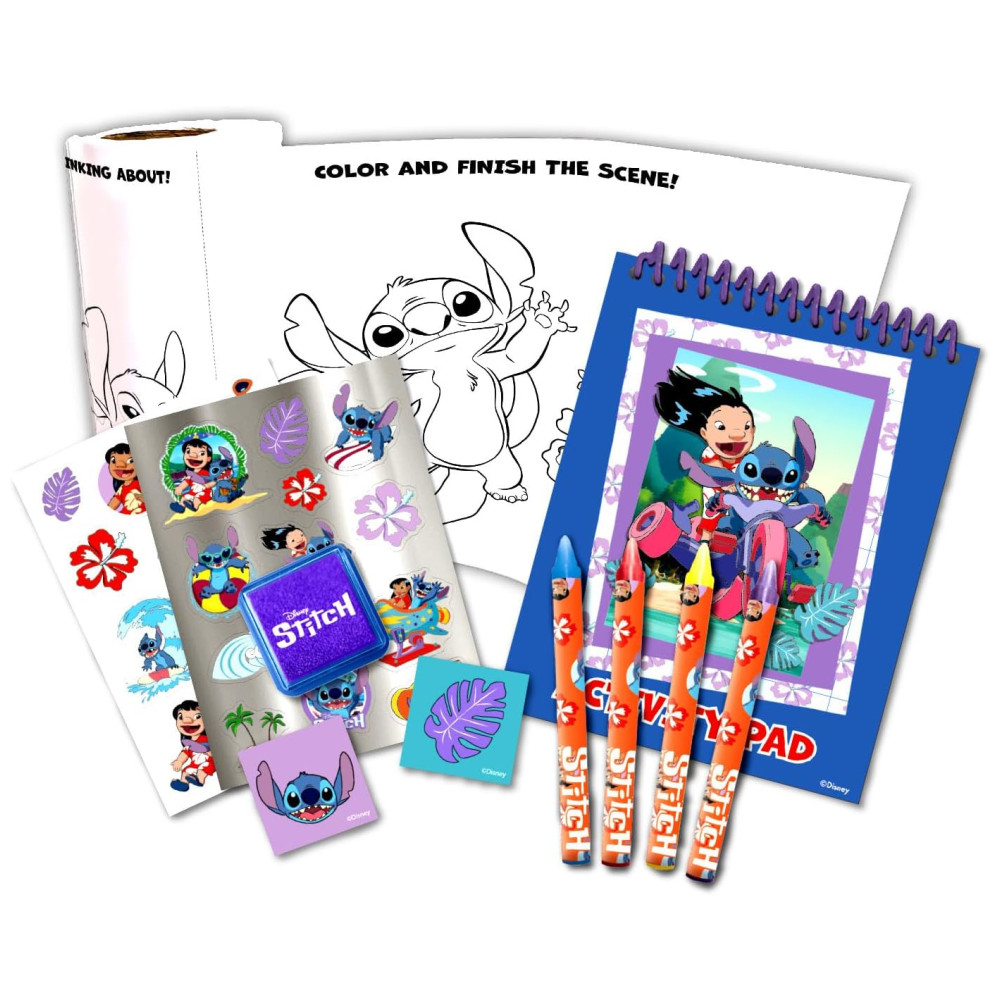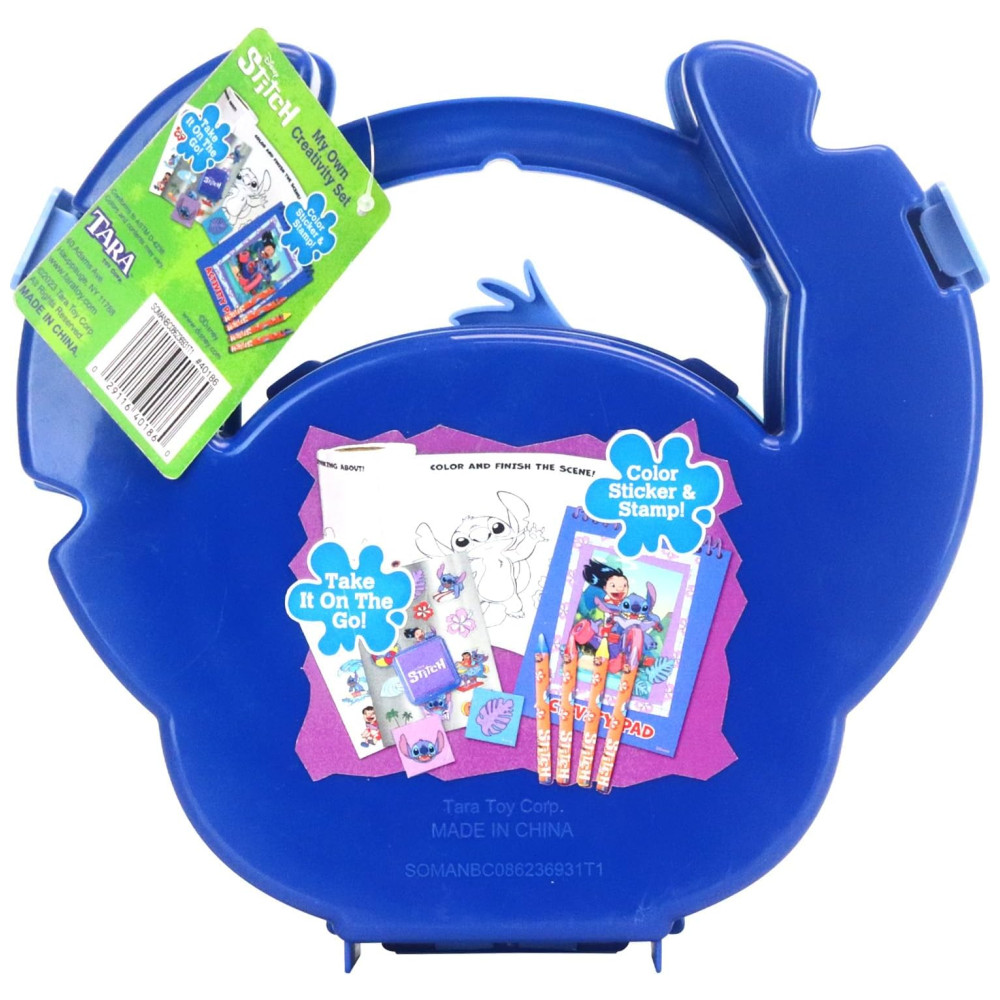 Kit de Criatividade Disney Stitch com Giz de Cera Vibrante Almofada de Tinta e Carimbos para Crianças a Partir de 3 Anos Tara Toy Azul