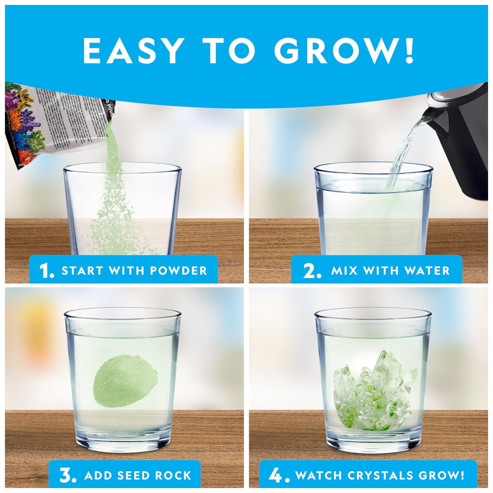 As crianças adoram cultivar cristais graças às nossas instruções fáceis de seguir. Eles vão misturar, despejar e observar enquanto este cristal gigante e incrível toma forma e, em seguida, aprenderão tudo sobre a ciência do cristal em nosso guia de aprendizagem detalhado