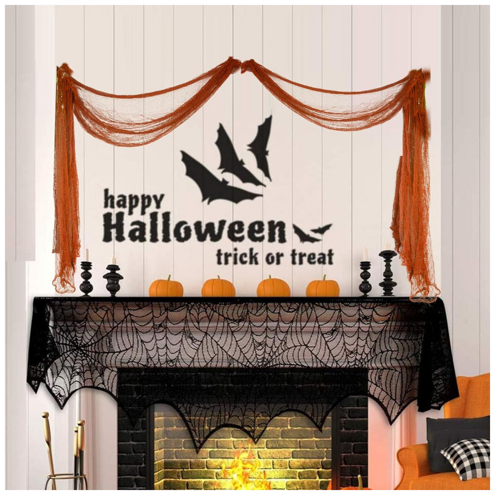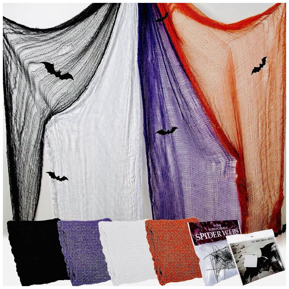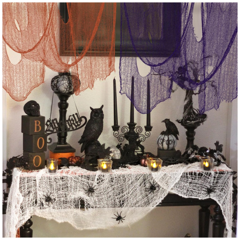 Amplas aplicações: Tamanho perfeito para decorações de porta malas ou carros, cobrindo lâmpadas, prateleiras e combinados para itens maiores. E você pode cobrir a maioria de nossas decorações normais com elas, em vez de derrubá las. Você pode usar a decoração de tecido assustador de Halloween para decorar corredores de entrada, cortinas de chuveiro, varandas, mesas, decks, janelas e portões para criar suas próprias cenas de terror fantásticas.