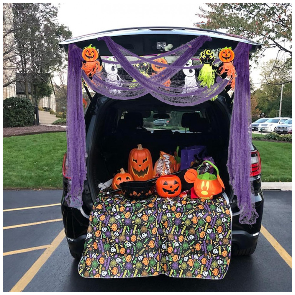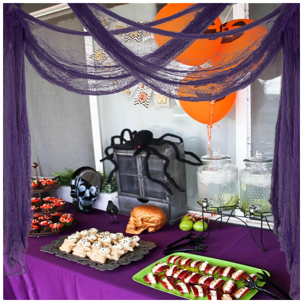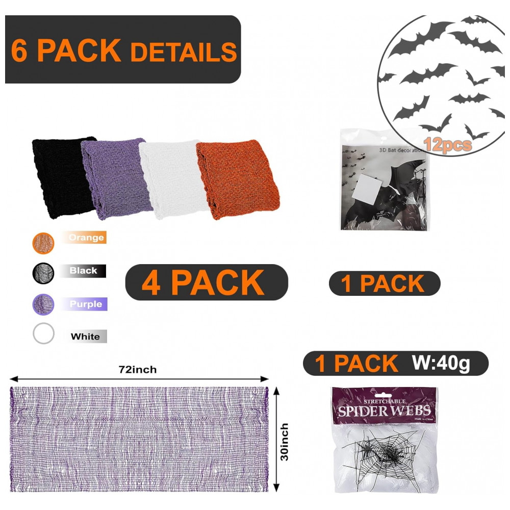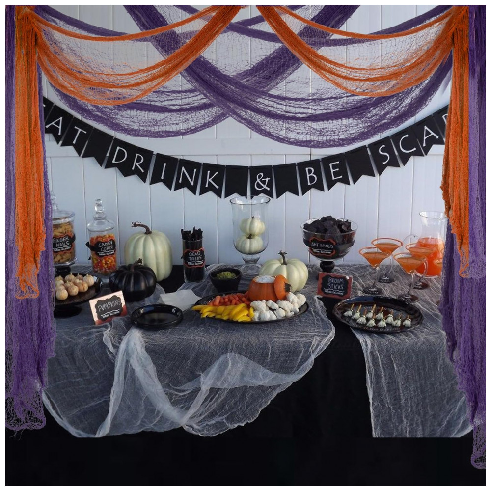 Amplas aplicações: Tamanho perfeito para decorações de porta malas ou carros, cobrindo lâmpadas, prateleiras e combinados para itens maiores. E você pode cobrir a maioria de nossas decorações normais com elas, em vez de derrubá las. Você pode usar a decoração de tecido assustador de Halloween para decorar corredores de entrada, cortinas de chuveiro, varandas, mesas, decks, janelas e portões para criar suas próprias cenas de terror fantásticas.