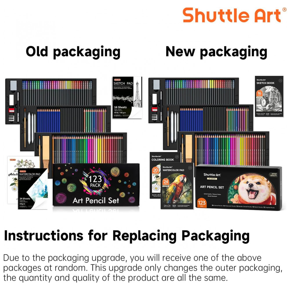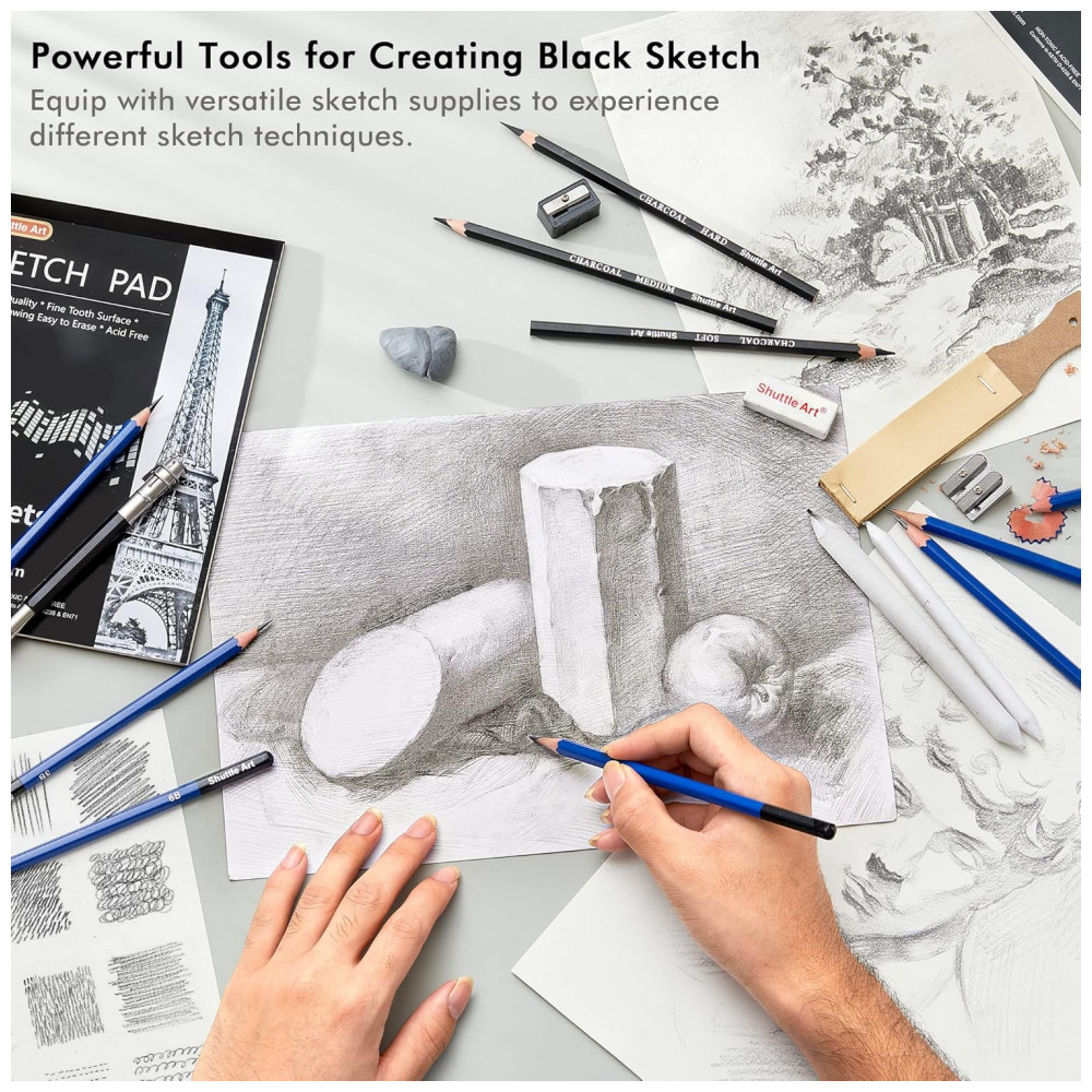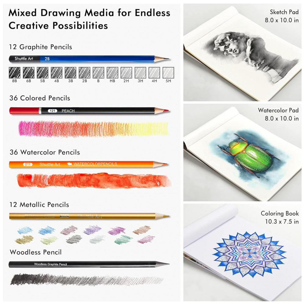 Kit de desenho profissional Shuttle Art 123 peças com lápis de cor aquareláveis metálicos grafite carvão blocos e acessórios em estojo com zíper