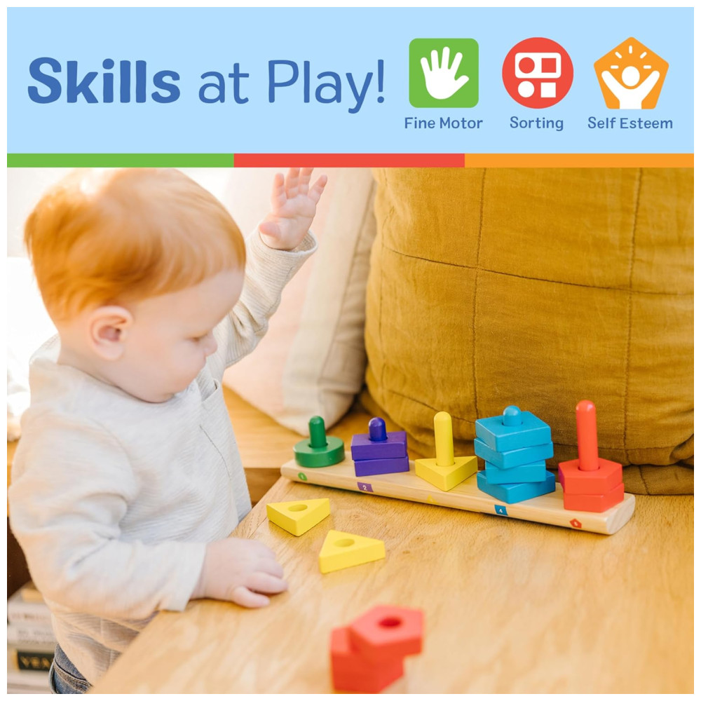 Kit de Empilhar e Classificar Infantil de Madeira com 15 Peças para Crianças Acima de 2 Anos Melissa & Doug