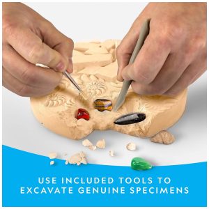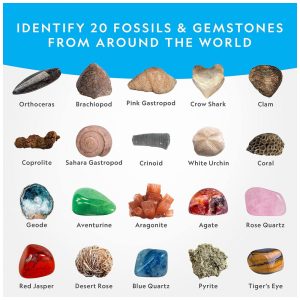 AMOSTRAS REAIS QUE SEUS FILHOS VÃO TESOURAR Este kit de escavação é tão emocionante porque cada espécime é . Seus filhos descobrirão pedras preciosas e fósseis s com milhões de anos, tornando este um brinquedo educativo verdadeiramente inesquecível