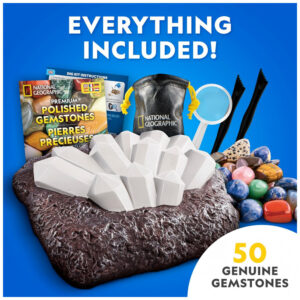 O Kit de Escavação Gigante de Gemas Reais da National Geographic transforma a curiosidade em descoberta! Com um grande bloco para escavar, este kit permite que crianças se tornem pequenos geólogos enquanto excavam 100 gemas genuínas de várias partes do mundo — entre elas ametista, olho de tigre e quartzo. As ferramentas de escavação e a lupa inclusas ajudam na busca, e o guia de aprendizagem em cores oferece fatos fascinantes sobre cada espécime, promovendo conhecimento em geologia, curiosidade científica e diversão STEM. Ideal como presente educativo, essa atividade mãos‑à‑obra proporciona entretenimento significativo além de estimular a coleção de rochas, a observação e a imaginação.