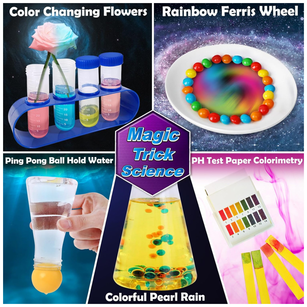 Este produto é um livro que contém 150 experimentos científicos emocionantes para crianças, abrangendo tópicos como terra, tensão superficial, química e física. O manual é fácil de seguir e bem ilustrado em formato passo a passo, permitindo que os pais possam acompanhar facilmente os experimentos com seus filhos em casa. Além disso, o livro inclui ferramentas científicas de laboratório de alta qualidade e materiais adequados para crianças, permitindo que as crianças usem óculos de proteção para se sentirem como verdadeiros cientistas. O livro também apresenta muitos projetos interessantes que podem ser realizados com utensílios domésticos comuns. Os experimentos científicos são uma ótima maneira de alimentar a curiosidade das crianças e proporcionar uma experiência de aprendizado divertida. Este livro é um presente educacional perfeito para Natal, aniversários, atividades de verão e inverno, férias escolares e diversão de fim de semana. As crianças terão uma boa maneira de aprender brincando, e os pais também terão algum tempo científico de qualidade com as crianças.