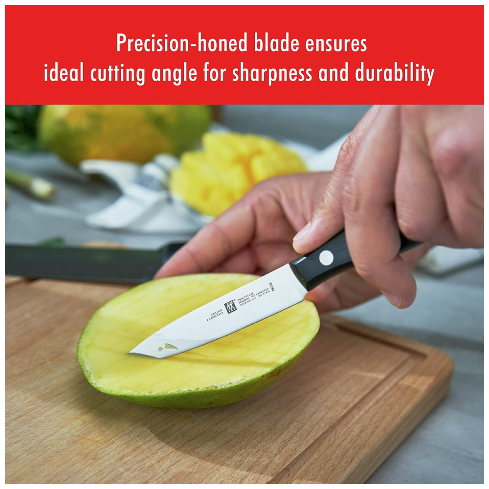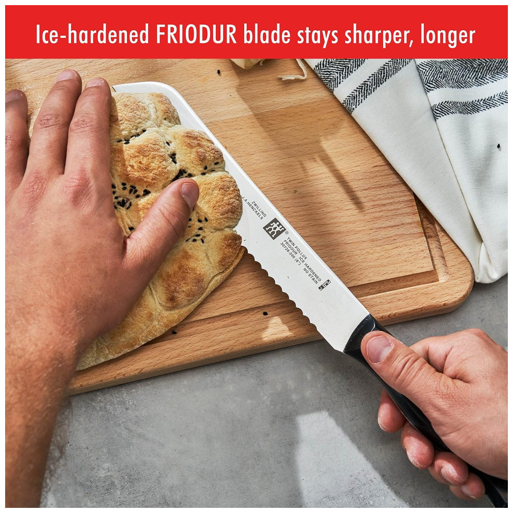 Desfrute de cortes precisos e sem esforço com este conjunto de facas leves e duráveis. As facas de aço inoxidável alemão facilitam o preparo dos alimentos. Pique vegetais grandes e folhas verdes com o cutelo de legumes, corte alimentos com interior macio e exterior resistente com a faca utilitária serrilhada e realize todas as tarefas na cozinha com o santoku de borda oca, que possui pequenas indentações para evitar que os alimentos grudem. As facas TWIN Signature são estampadas com precisão a partir de uma única peça de aço inoxidável de fórmula especial, resultando em facas mais leves. Combinadas com a técnica de endurecimento de gelo exclusiva da ZWILLING, essas lâminas FRIODUR permanecerão mais afiadas por mais tempo. Para garantir um ângulo de corte ideal, a borda afiada controlada a laser é finamente amolada e finalizada à mão. O cabo ergonômico de três rebites embutido com o logotipo da ZWILLING proporciona durabilidade e equilíbrio. E essas facas alemãs, seguras para lava-louças, são convenientemente fáceis de limpar. Inclui Faca para Descascar, Faca para Preparo, Faca Santoku com Borda Oca, Faca de Chef , Faca de Pão , Faca de Carne a Granel, Tesouras TWIN, Bloco Autoafiável de Cinza Natural. Fabricado a partir de aço inoxidável alemão de fórmula especial. Lâmina estampada de uma peça para uma faca mais leve que não sacrifica a resistência. Lâmina FRIODUR endurecida a gelo começa mais afiada e permanece assim por mais tempo. Cabo ergonômico de polímero perfeitamente unido à espiga completa. Cabo tradicional com três rebites embutido com o logotipo da ZWILLING.