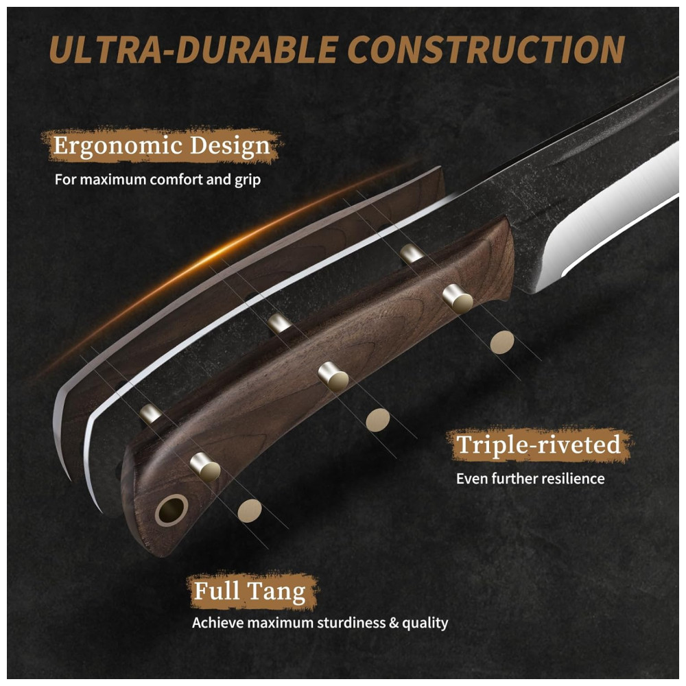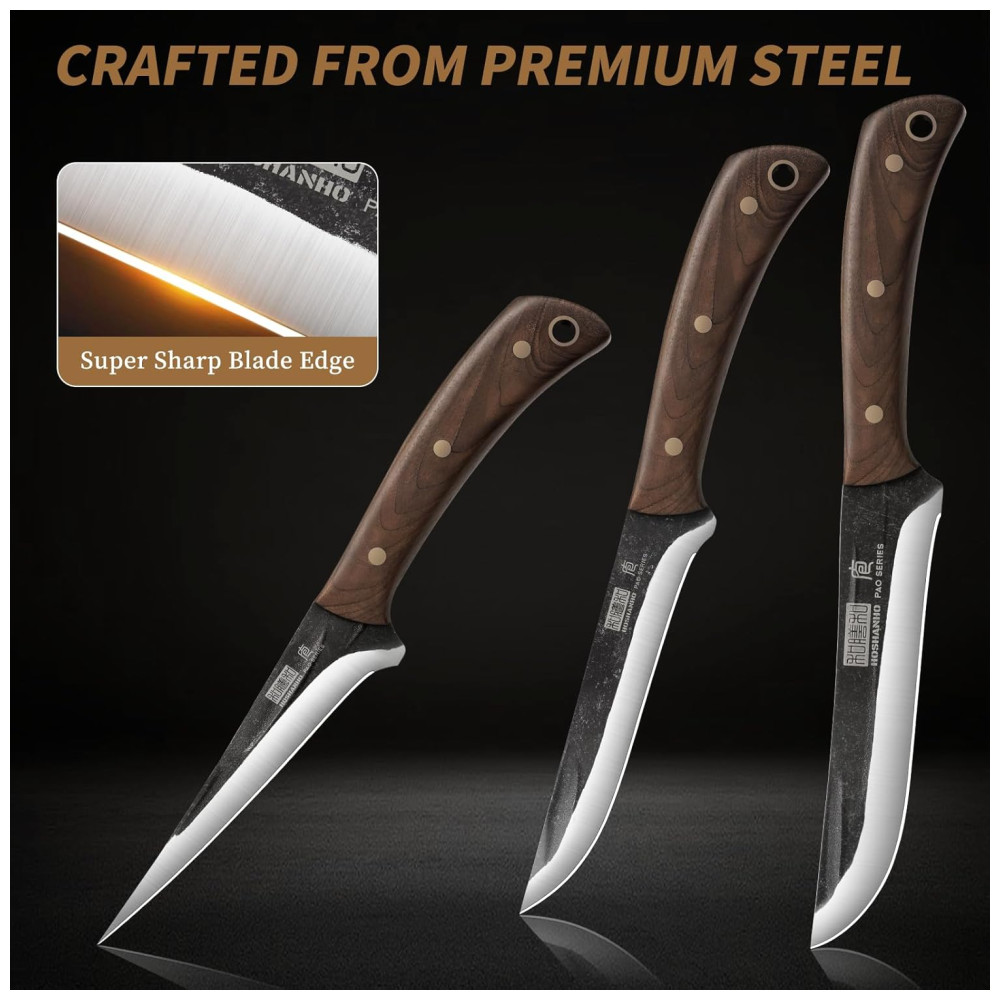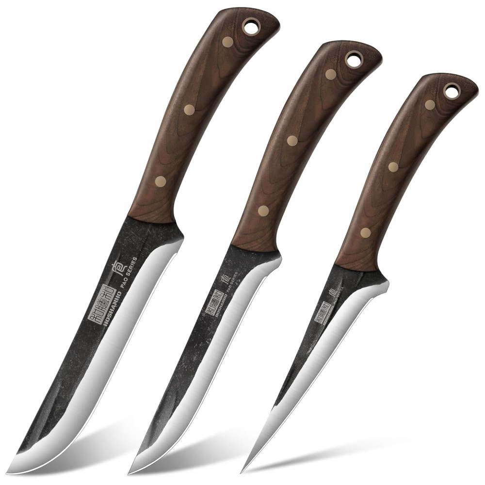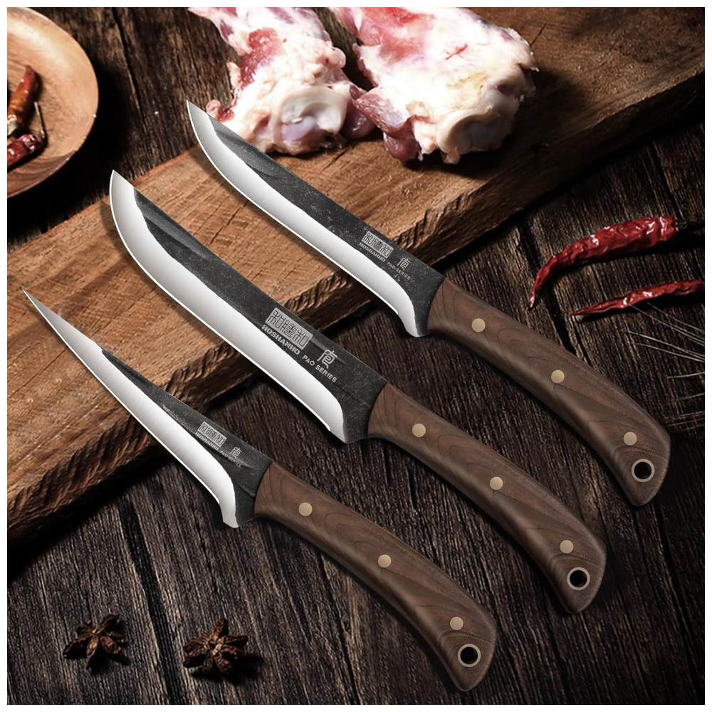 Kit de Facas para Açougueiro 3 Peças Faca de Filé Super Afiada Forjada à Mão + Facas de Dividir e Cortar Legumes em Aço InoxHOSHANHO