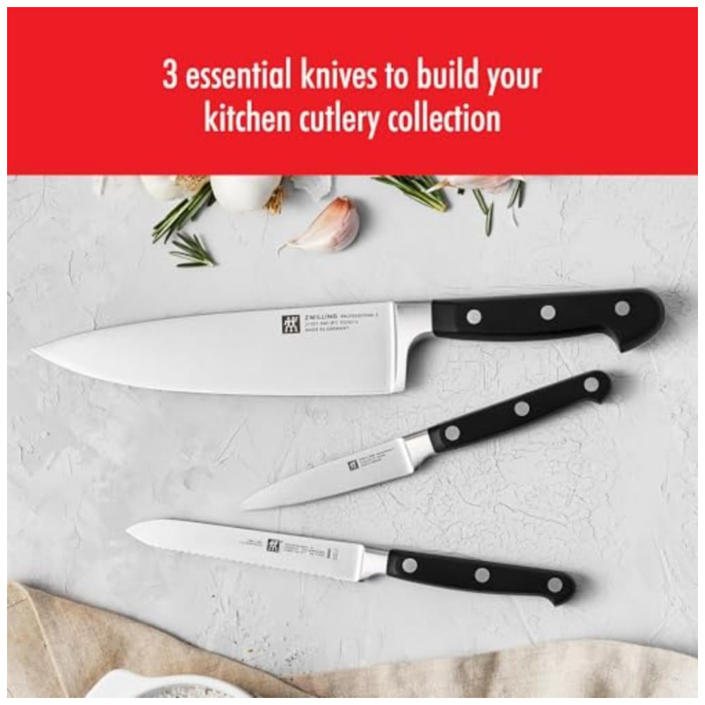 Kit de Facas Profissionais ZWILLING Professional S 3 Peças Lâminas Afiadas a Laser em Aço Alemão Fabricado na Própria Fábrica Seguro para Uso