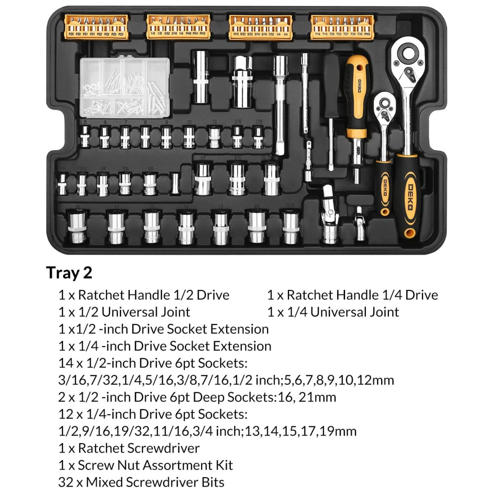 Kit de Ferramentas com Maleta de Transporte 258 Peças Amarela DEKOPRO RF 06082019 Amarelo