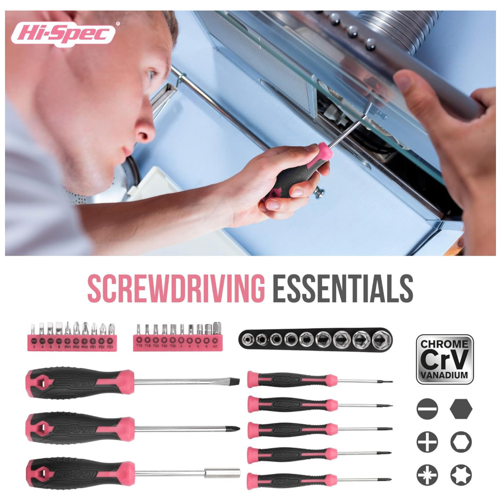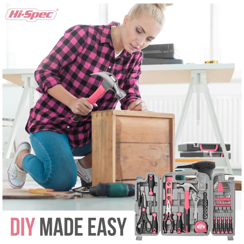 Kit de Ferramentas com Maleta de Transporte 56 Peças HI SPEC Rosa
