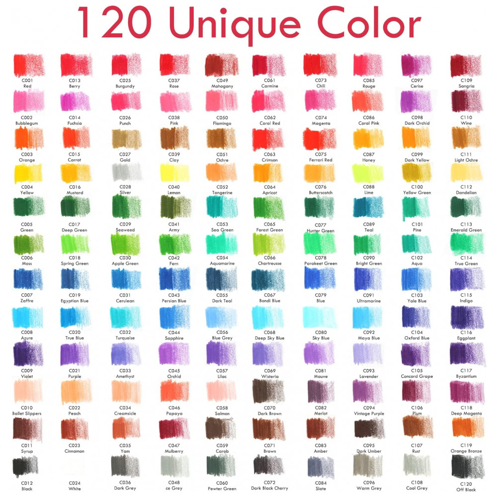 Kit de lápis de desenho 144 peças KALOUR com 120 lápis de cor sketch kit 24 peças bloco para esboço e estojo com zíper