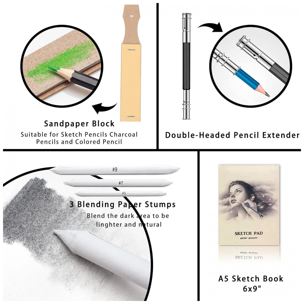 Tipo de produto: Kit de lápis artísticos com bloco de esboço e estojo de viagem