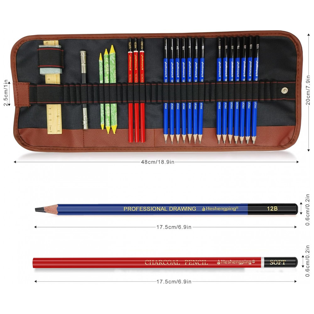 Kit de lápis para desenho 26 peças Daerthotk com 14 lápis grafite carvão borrachas acessórios e estojo em rolo de lona