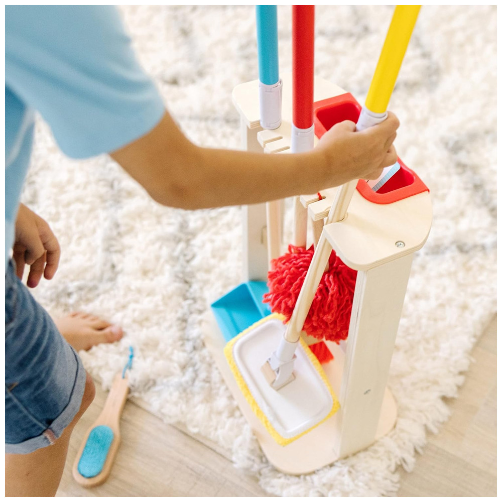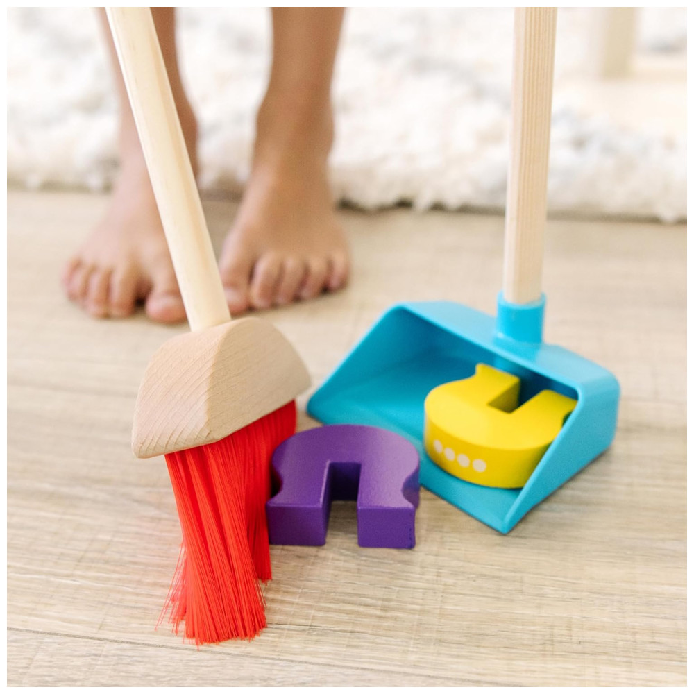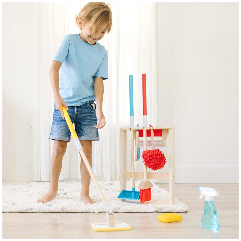 Faça a limpeza da casa se tornar uma brincadeira divertida com o conjunto de acessórios de limpeza infantis realistas da Melissa Doug. O conjunto inclui uma vassoura com cabo longo de madeira, uma pá de lixo e uma vassoura com pano de limpeza removível para deixar o chão brilhando. Além disso, há um espanador macio para polir superfícies, uma esponja, um borrifador e um rolo de toalha de pano reutilizável preso ao suporte de armazenamento de madeira para limpar a sujeira.