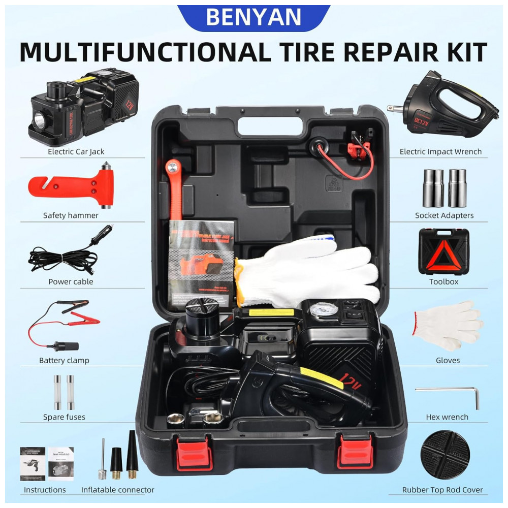 Kit de Macaco Elétrico 5 Toneladas 12V Elevador de Macaco Elétrico para Veículo Ferramenta de Reparo Automático Hidráulico ElétricoBENYAN