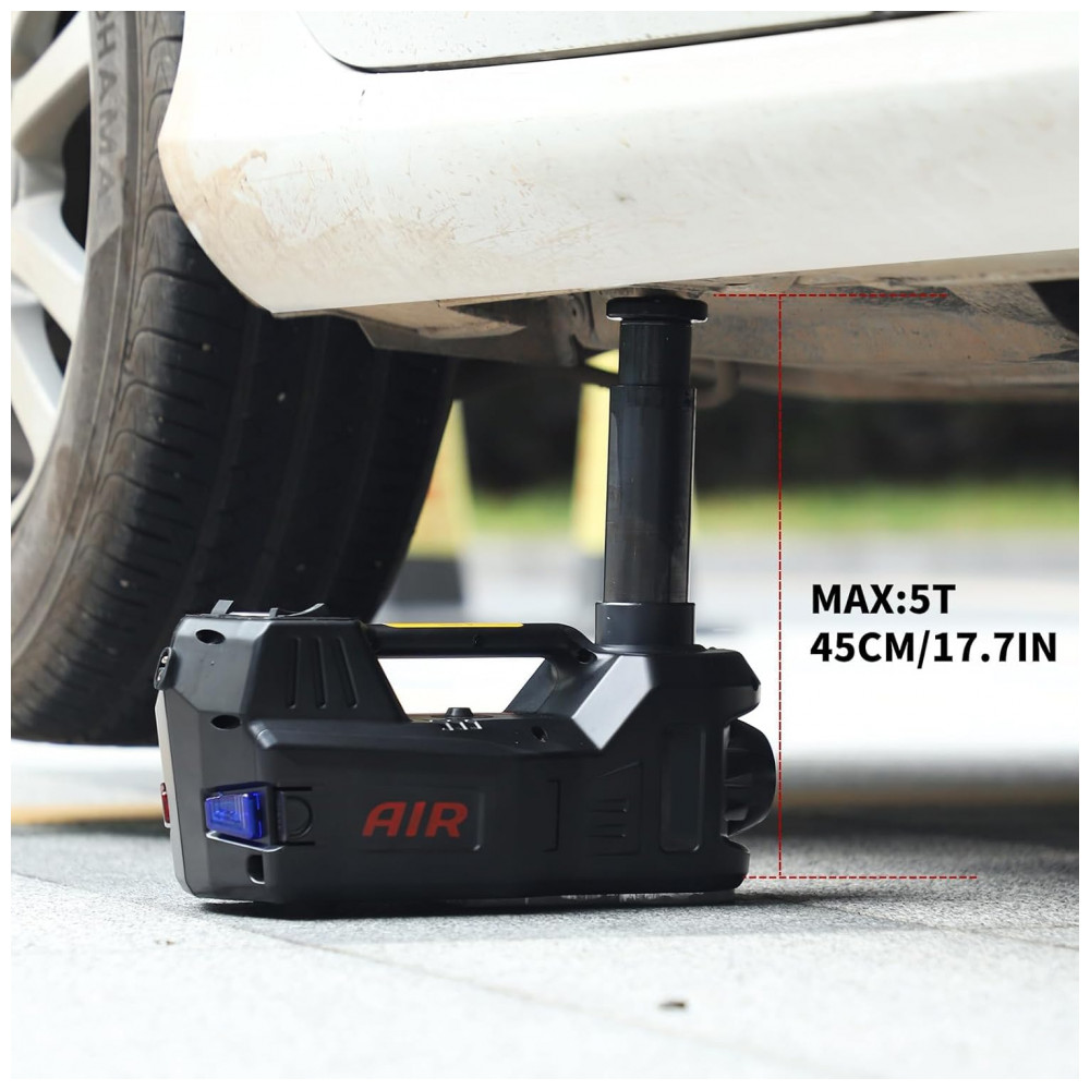 DESEMPENHO DO PRODUTO: Nosso macaco elétrico é acionado hidraulicamente e pode içar veículos de até 5 toneladas em menos de 2 minutos, alcançando a altura máxima de elevação de 1570 centímetros. Compatível com autos, sedans, SUVs, MPVs, picapes e caminhões, superando outros macacos automotivos. PACOTE DO PRODUTO INCLUI: macaco elétrico, chave de impacto elétrica, estojo de plástico, cabo de energia de 3,5 metros, garras da bateria com fio, par de luvas e manual do usuário, entre outros. Este kit é completo para emergências na estrada e também muito conveniente para uso doméstico. MULTIFUNCIONAL: O macaco elétrico possui bomba de ar automática e luz LED embutida, atendendo a diversas necessidades em diferentes ambientes. Fácil de ser utilizado, inclusive por iniciantes. SEGURANÇA: Para garantir máxima segurança, o macaco elétrico para automaticamente de funcionar ao atingir seu limite de altura. Este conjunto atende a diversas demandas, sendo uma ferramenta essencial para situações de emergência ao ar livre. OBSERVAÇÕES: Ligar o motor do carro antes da operação. NUNCA UTILIZE O MACACO EM TERRENOS INCLINADOS OU EM VEÍCULOS COM MAIS DE 5 TONELADAS.